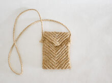 ラフィア蓋つきポシェットV字柄