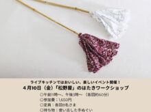 はたきワークショップのお知らせ いよいよ来週から『いりこのおっちゃんと仲間たちの食と道具のマーケット Vol.2』が始まります。 今回はライブキッチンにて、さまざまなイベントが開催される予定です。 その中 […] -