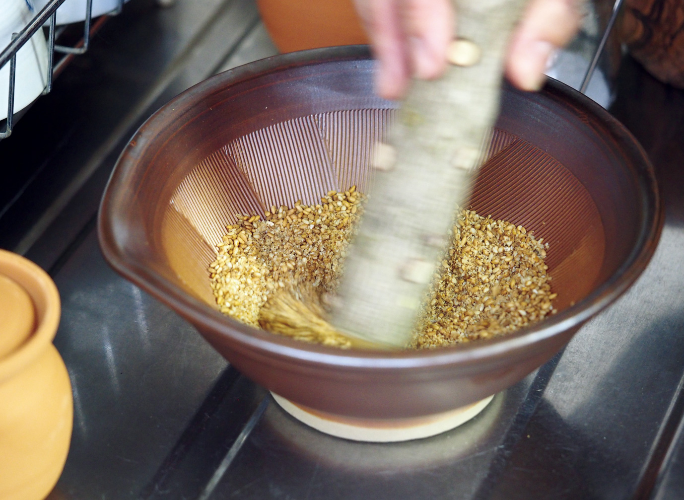 ご使用後はたわしで溝をこすって洗い、よく乾燥させてから保管してください。石見焼すり鉢が再入荷しました。