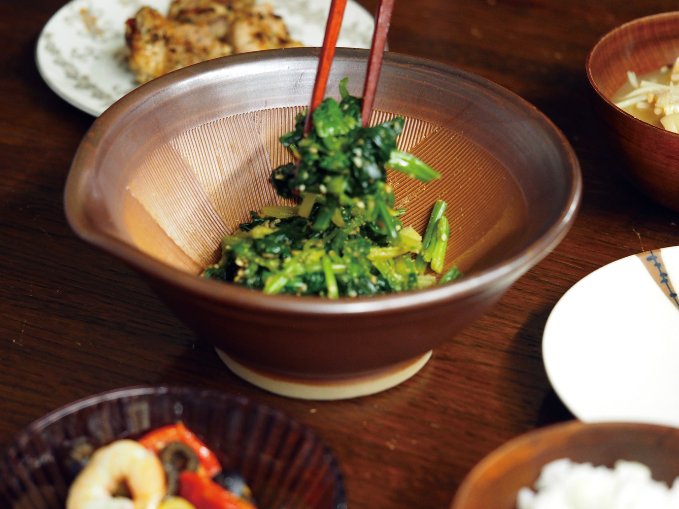 胡麻をすって、胡麻和えを作ったら、そのまま盛り鉢としてもお使いいただけます。