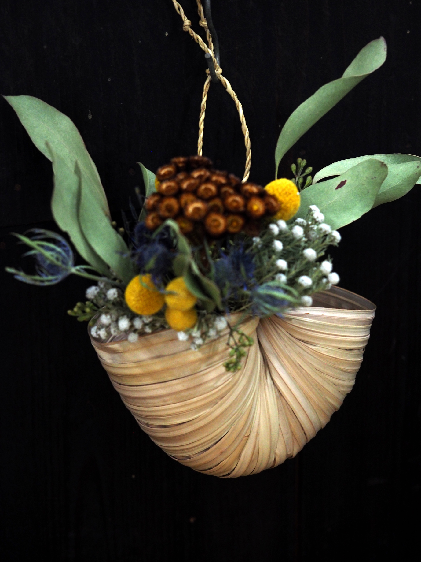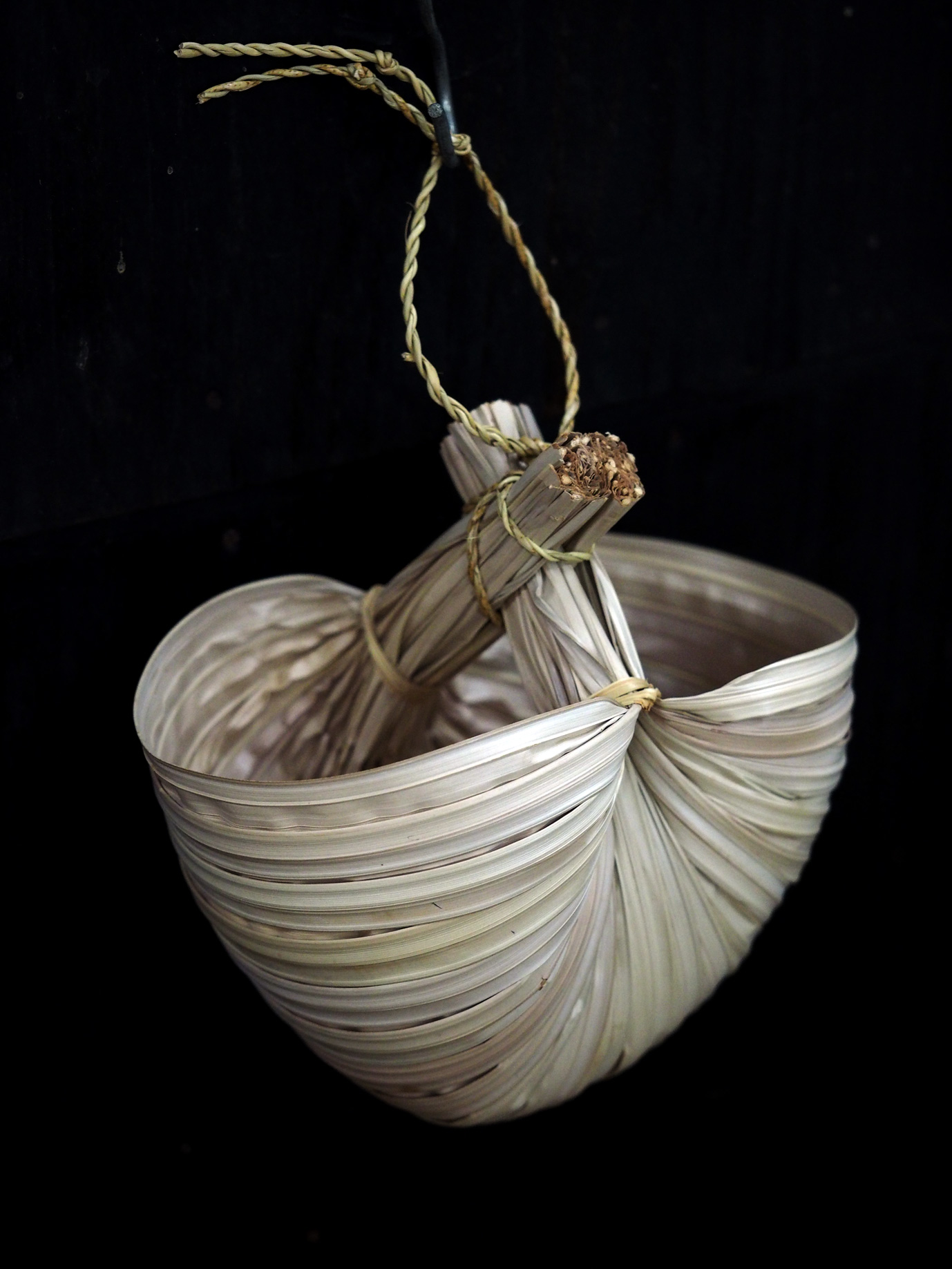 ヤシ科の植物「ニッパやし」という素材の葉で編んだカゴです。