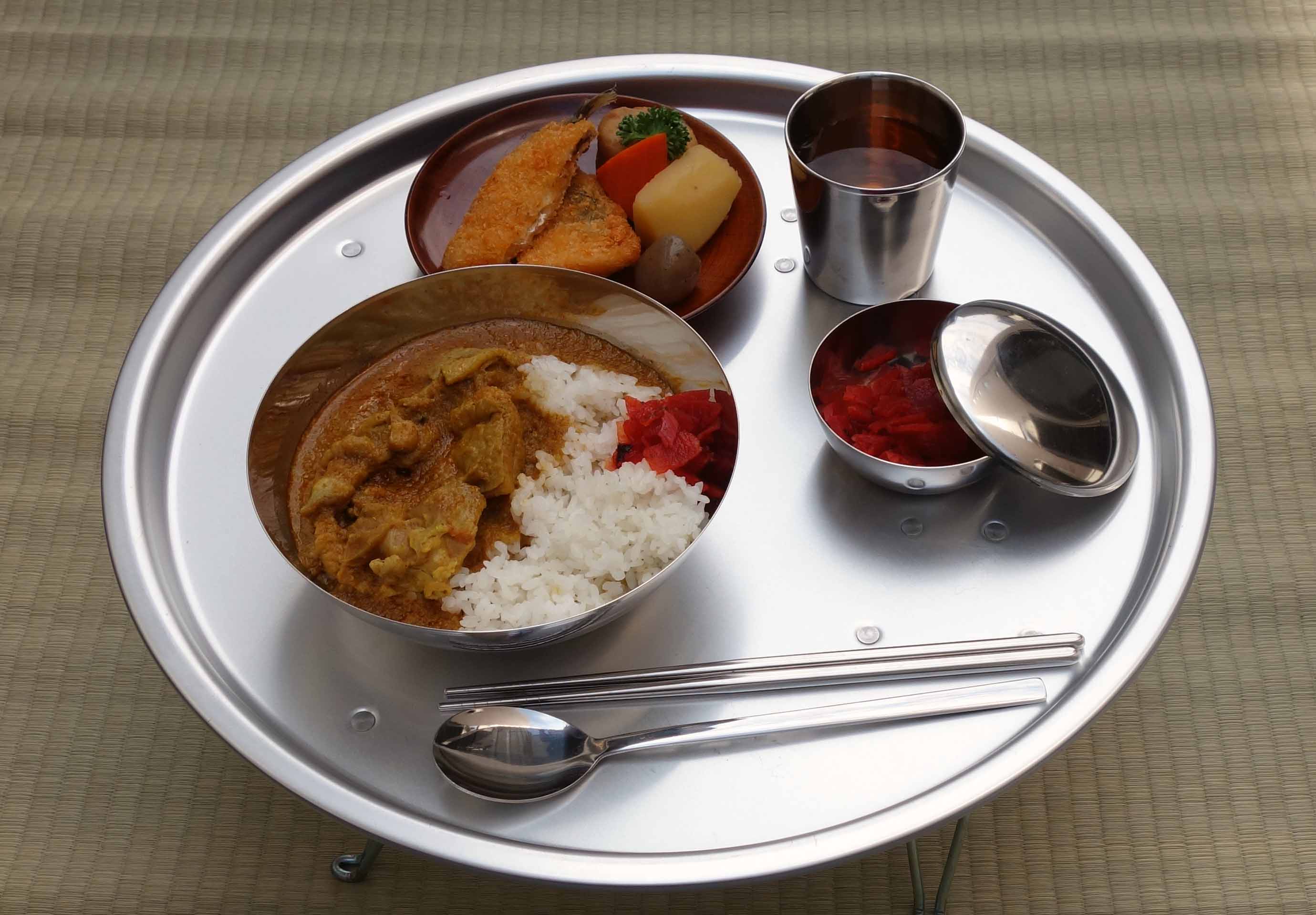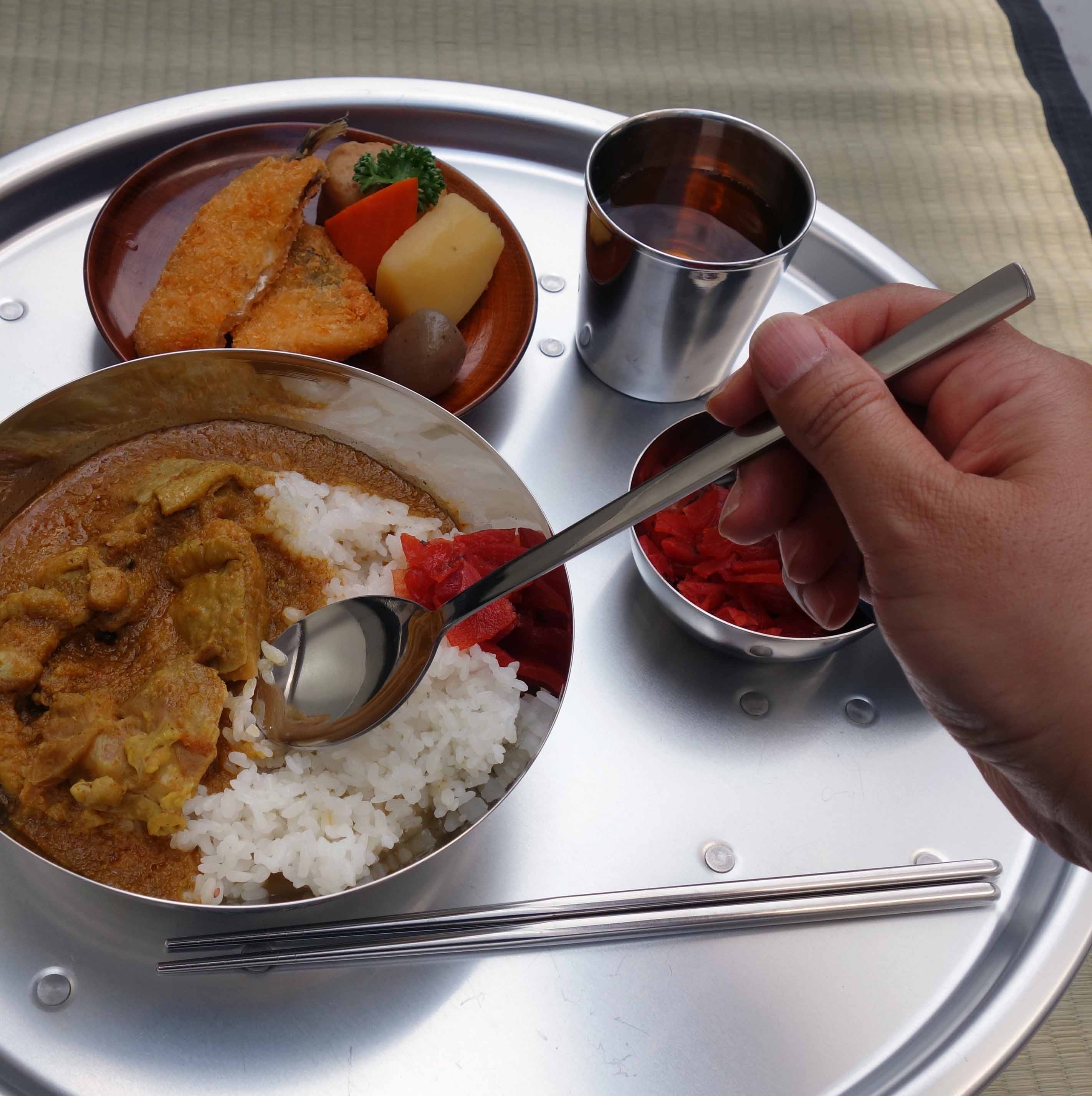 ちなみに写真はカレールーはレトルト、おかずとごはんはほのぼのとしたお弁当屋さんのお弁当を盛りつけました。