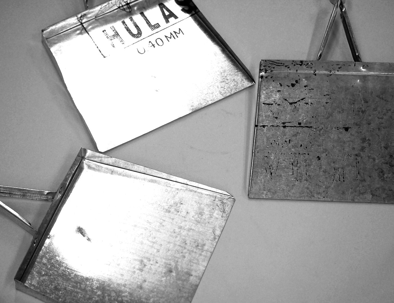 No3 ちりとり部分はマットなトタン、持手はツヤのあるトタンを使用