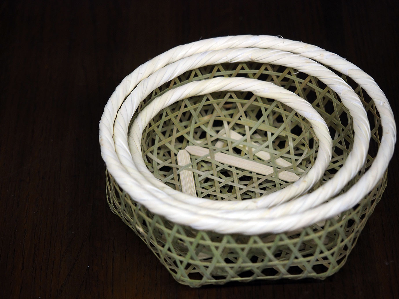 3つの大きさが入れ子になったセットのかごです。