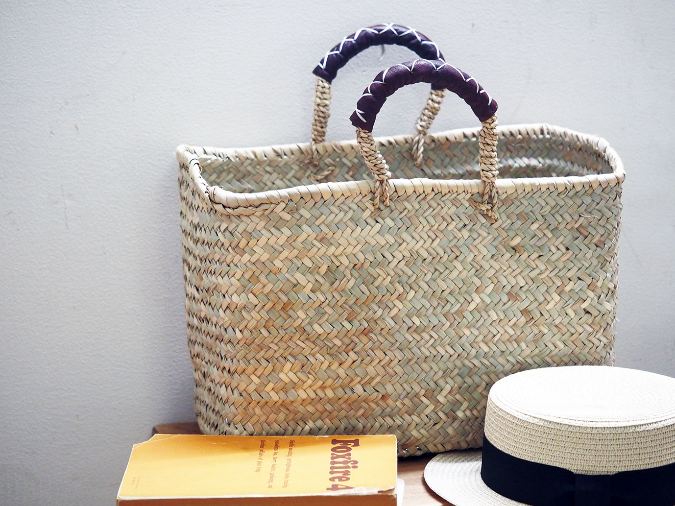 通常のラフィア商品と並べてみるとわかりやすいのですが茶色が濃い目のベージュです。