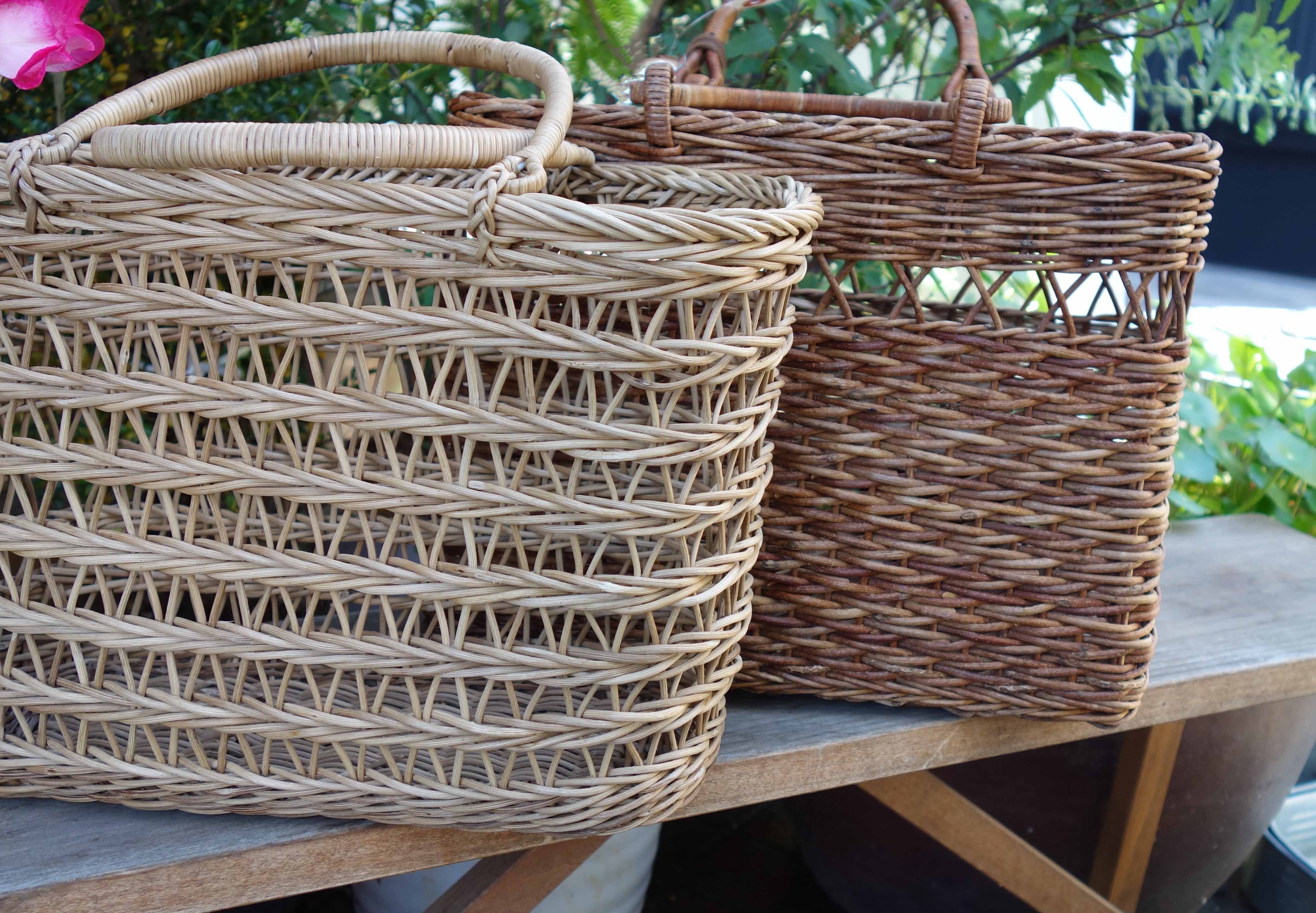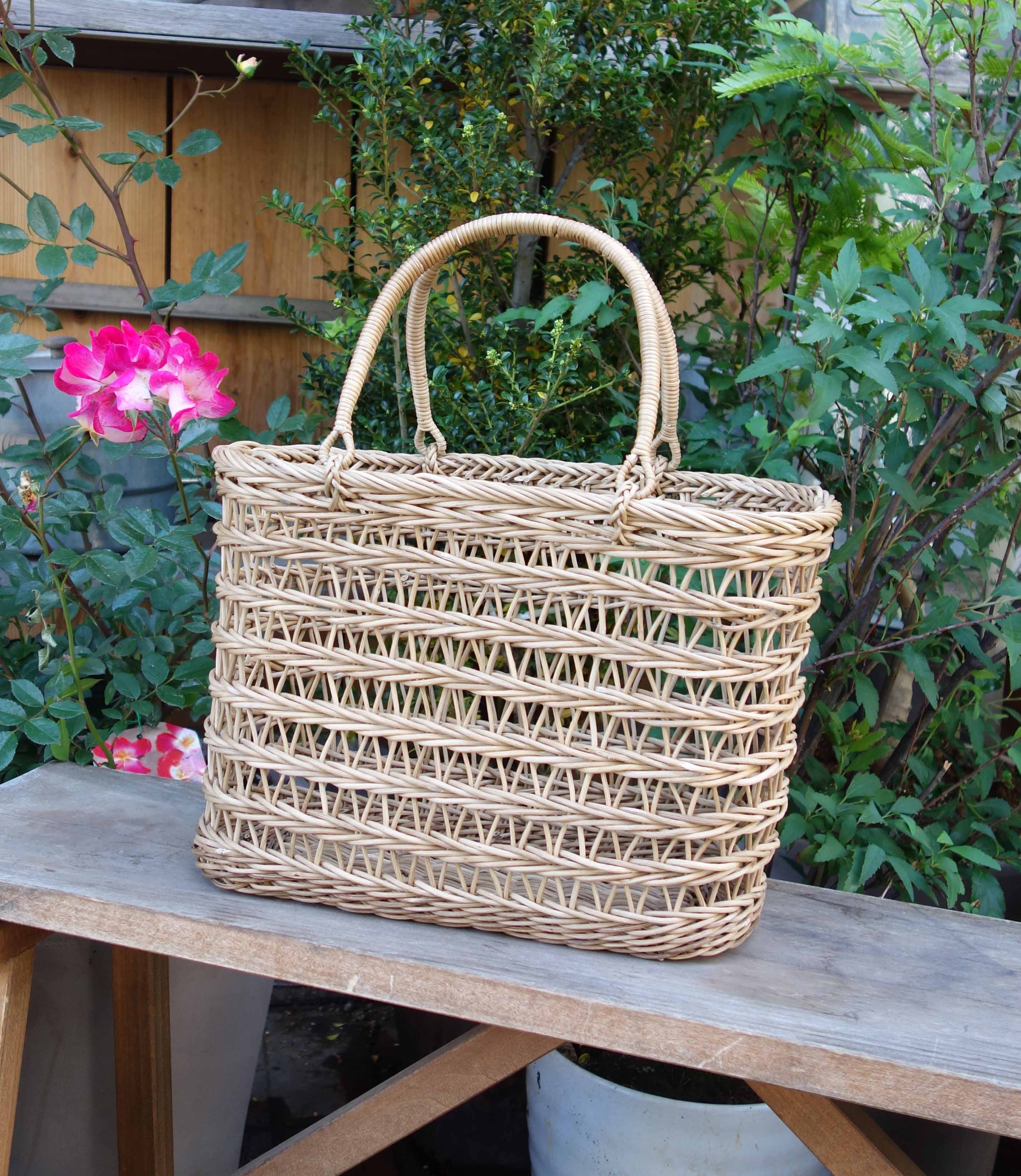 長野県のあけびの皮をむいて編み上げた買物かごです。