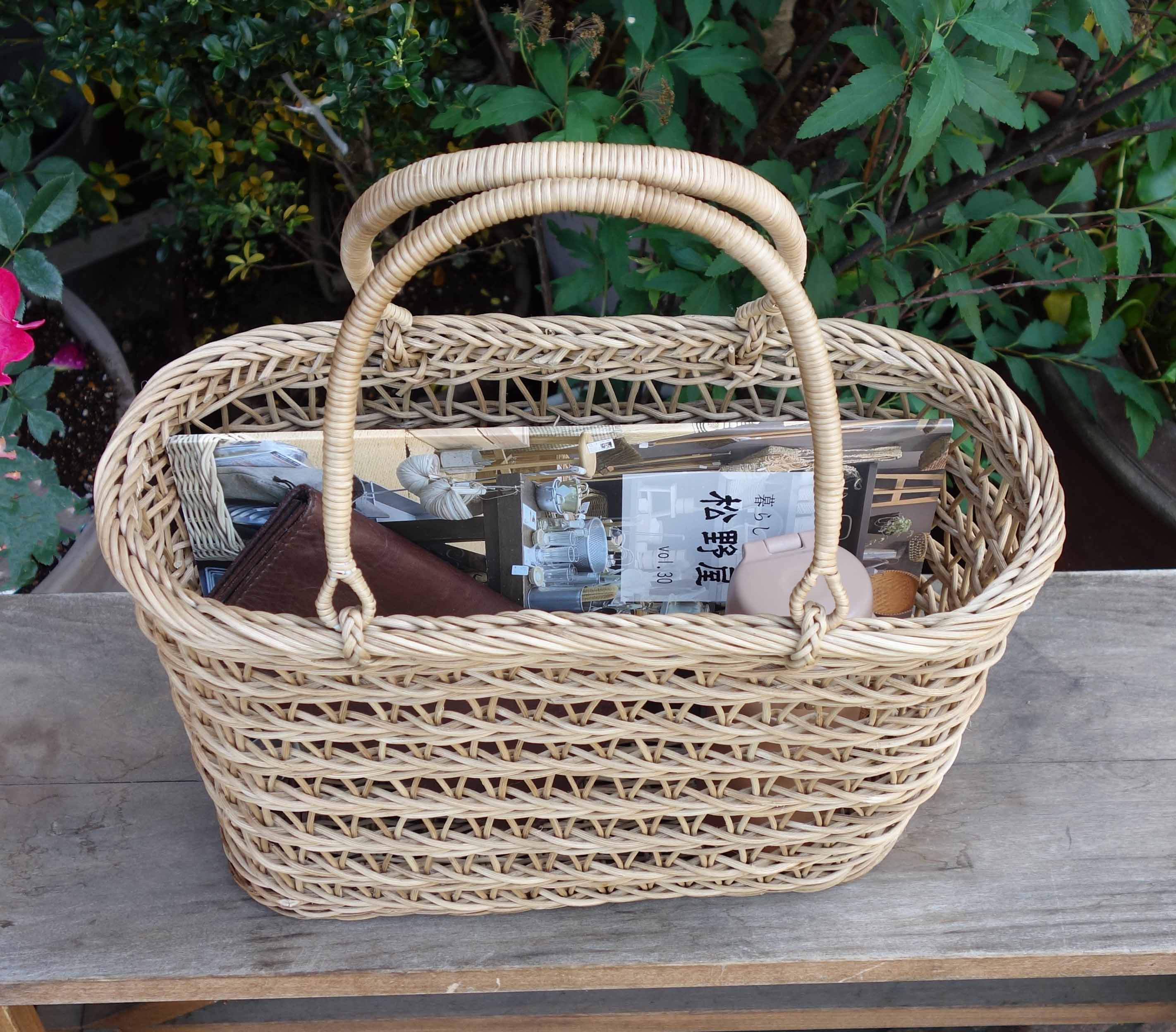 あけび皮ムキ小判スカシかご大がごく少量ですが再入荷しました。