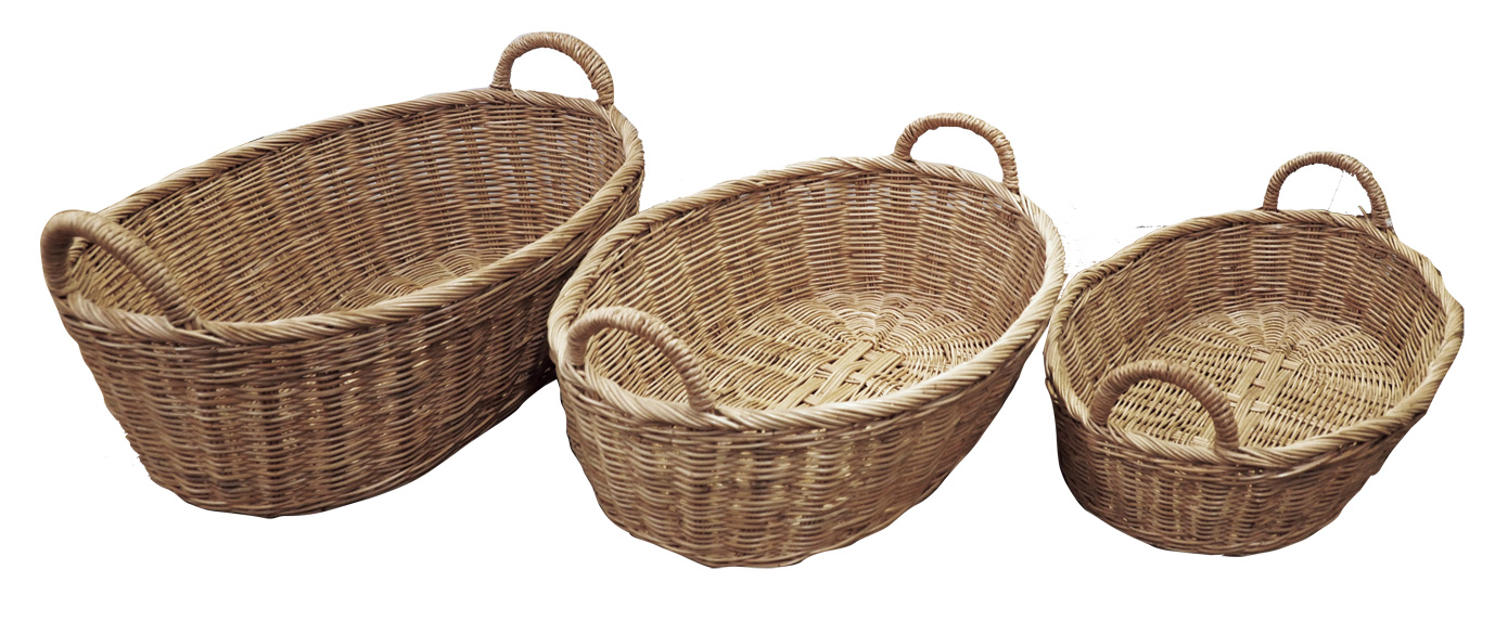 ラタン取手付楕円バスケットロータイプ L、M、S