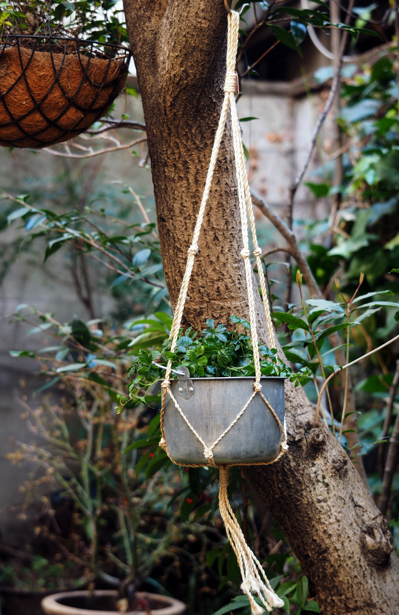 バケツやバスケットなど、お好きな鉢植えを乗せて吊るすガーデニンググッズです。