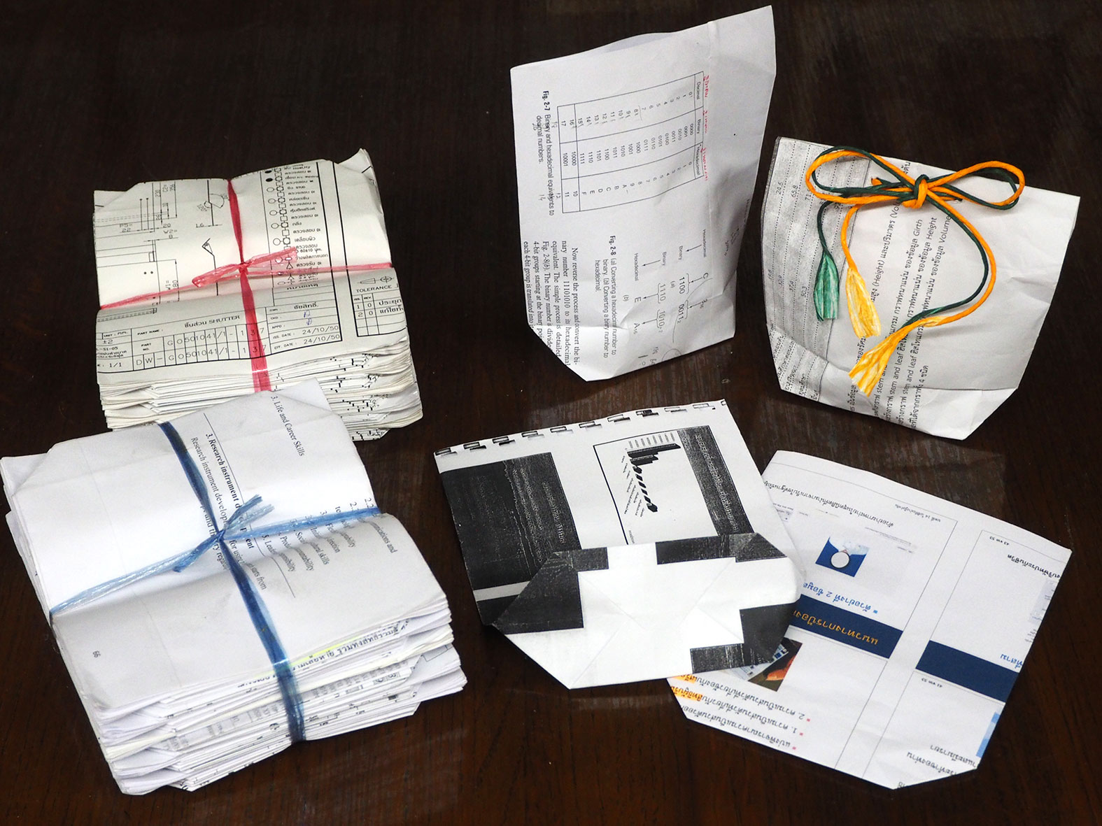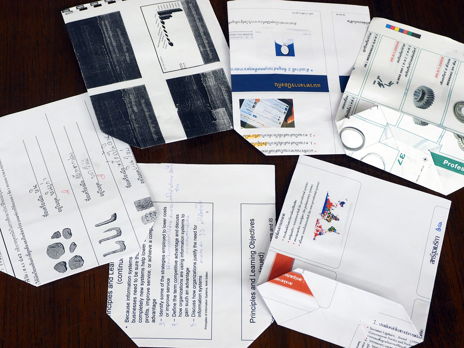 タイの学校で使っていたプリントやテスト用紙などを使って、