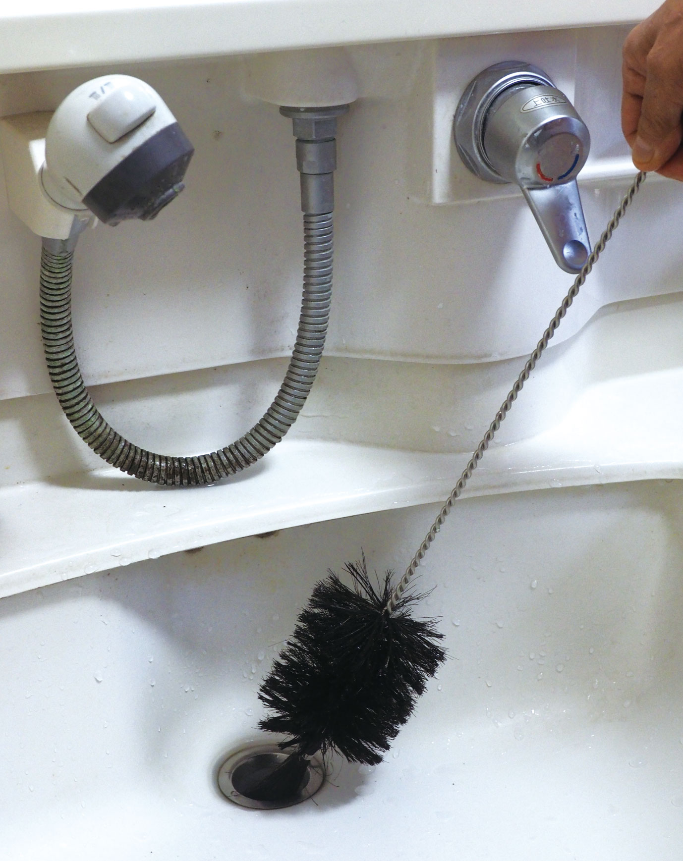 ビンを洗うのに最適な馬毛のビンたわしです。