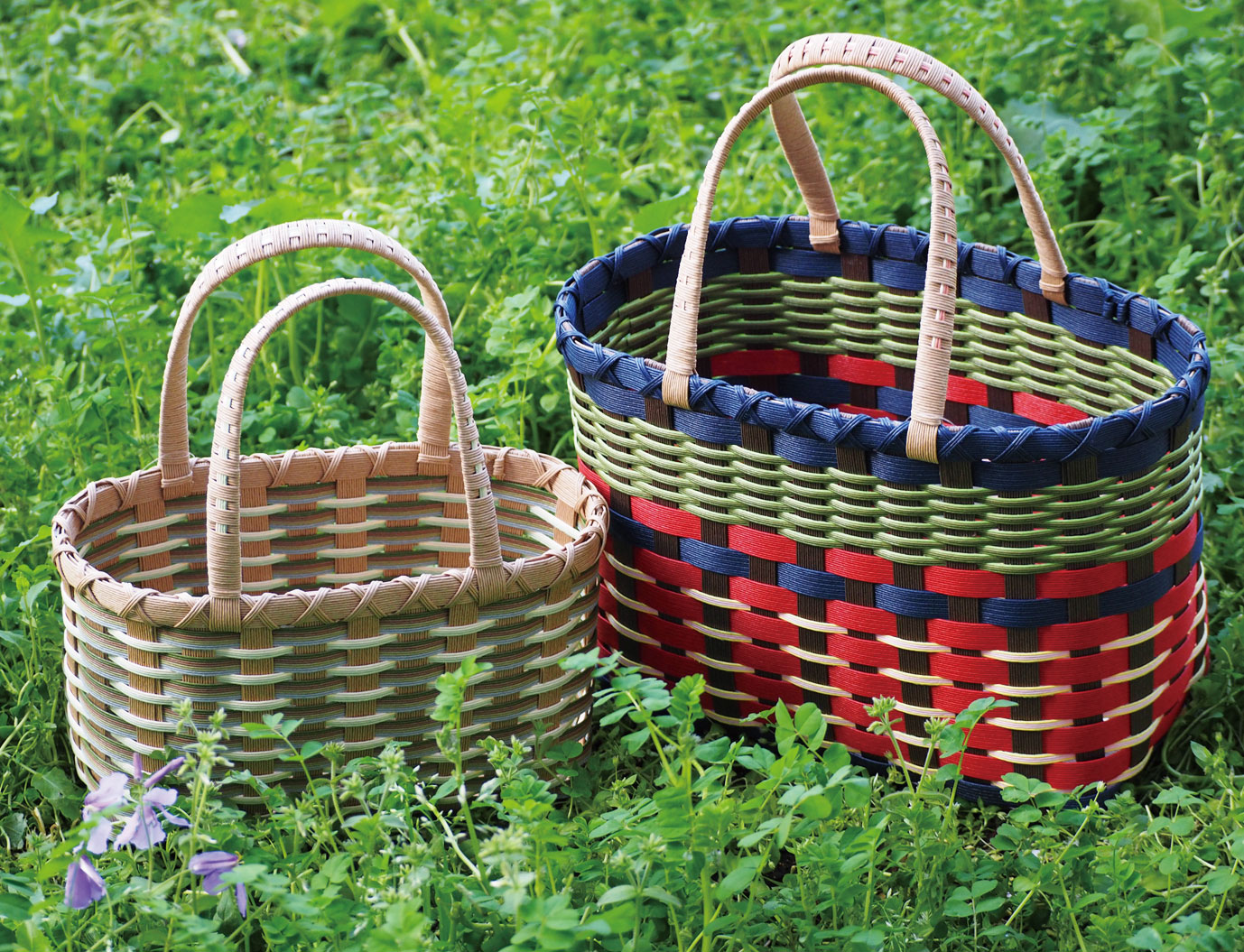 荷造り用のクラフトテープを使用して編んだクラフトテープバスケット大・小が再入荷しました。