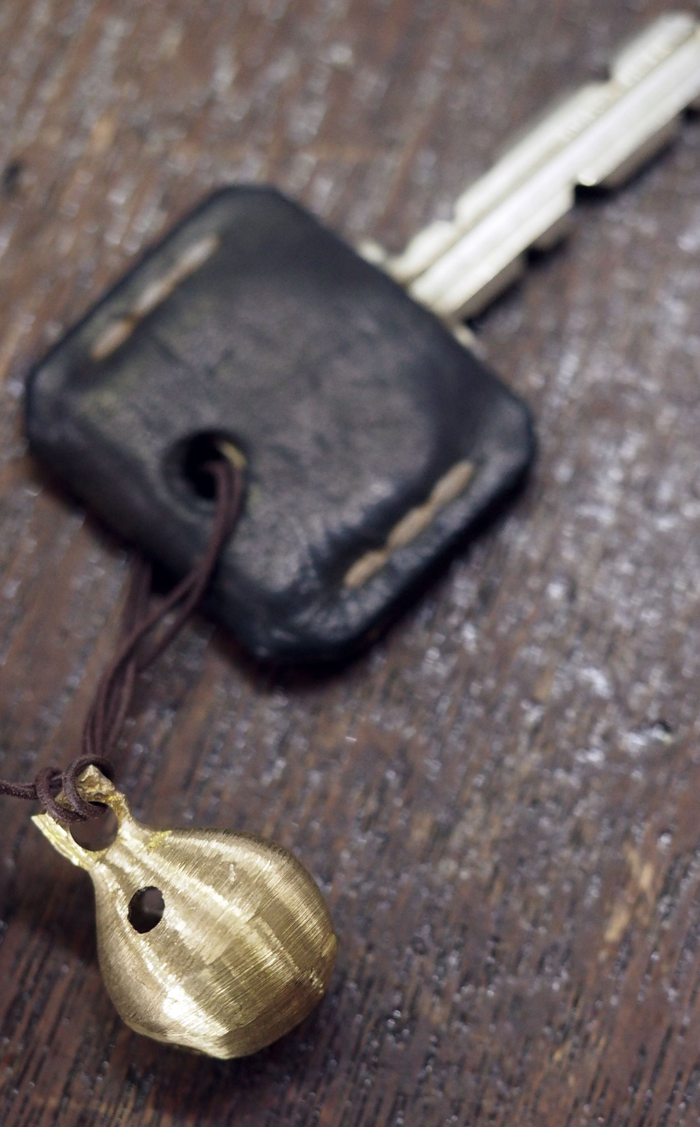 錐で下穴を軽くあけます。穴が大きくなりすぎないように注意します。