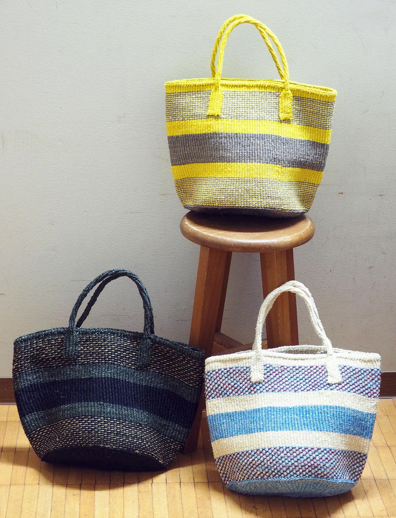 不良品ではありませんのでご了承下さい。サイザル共手トートバッグMミックス太ボーダーが再入荷しました。