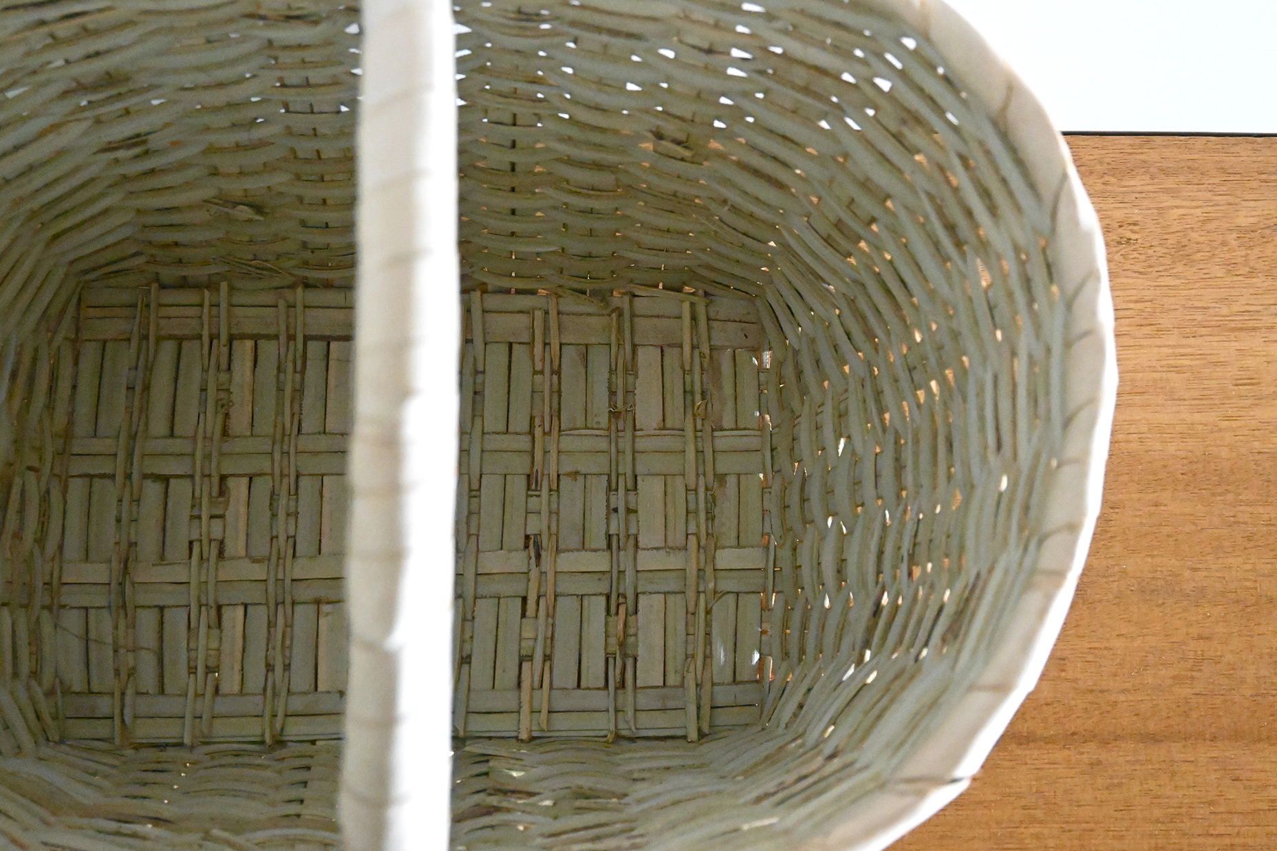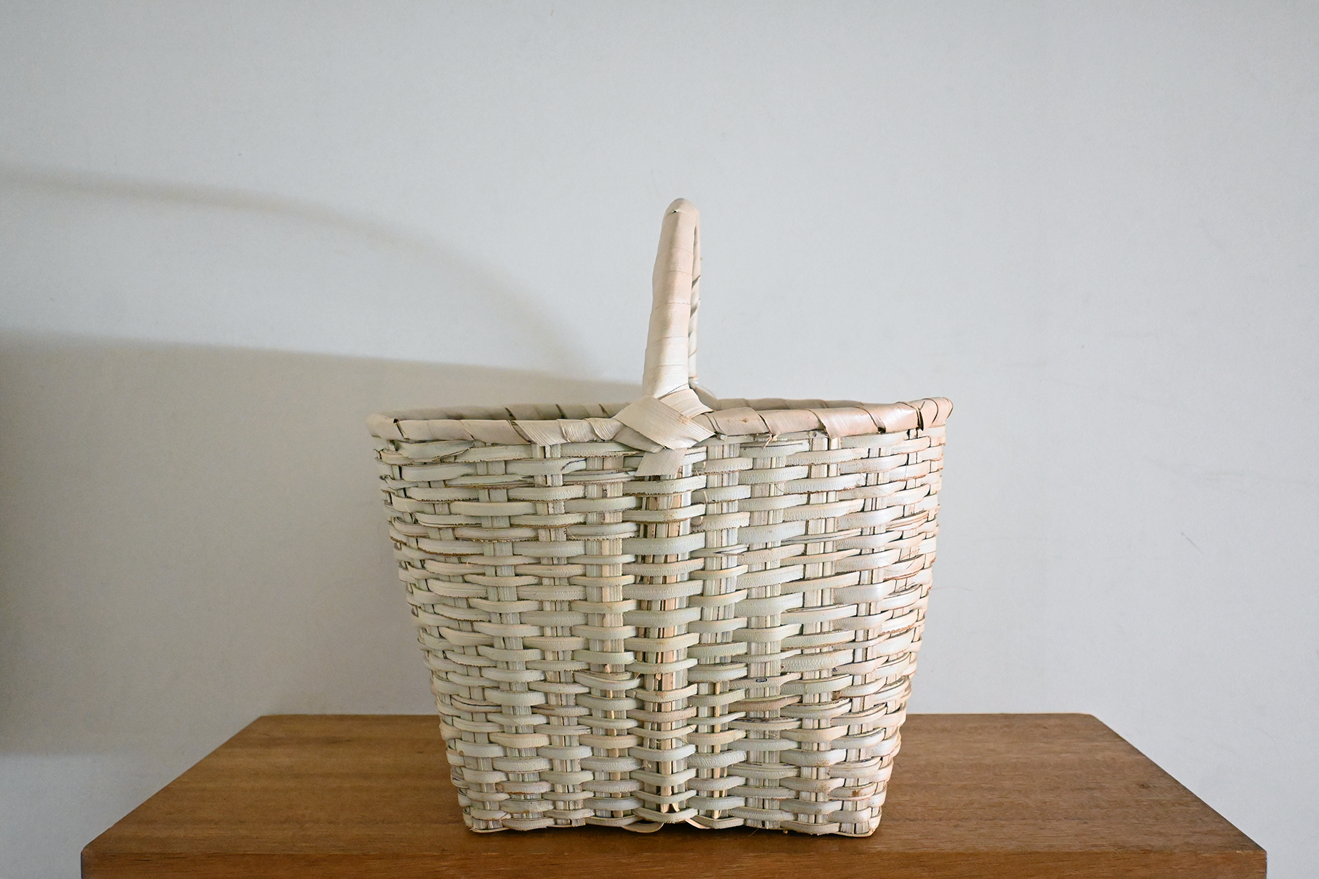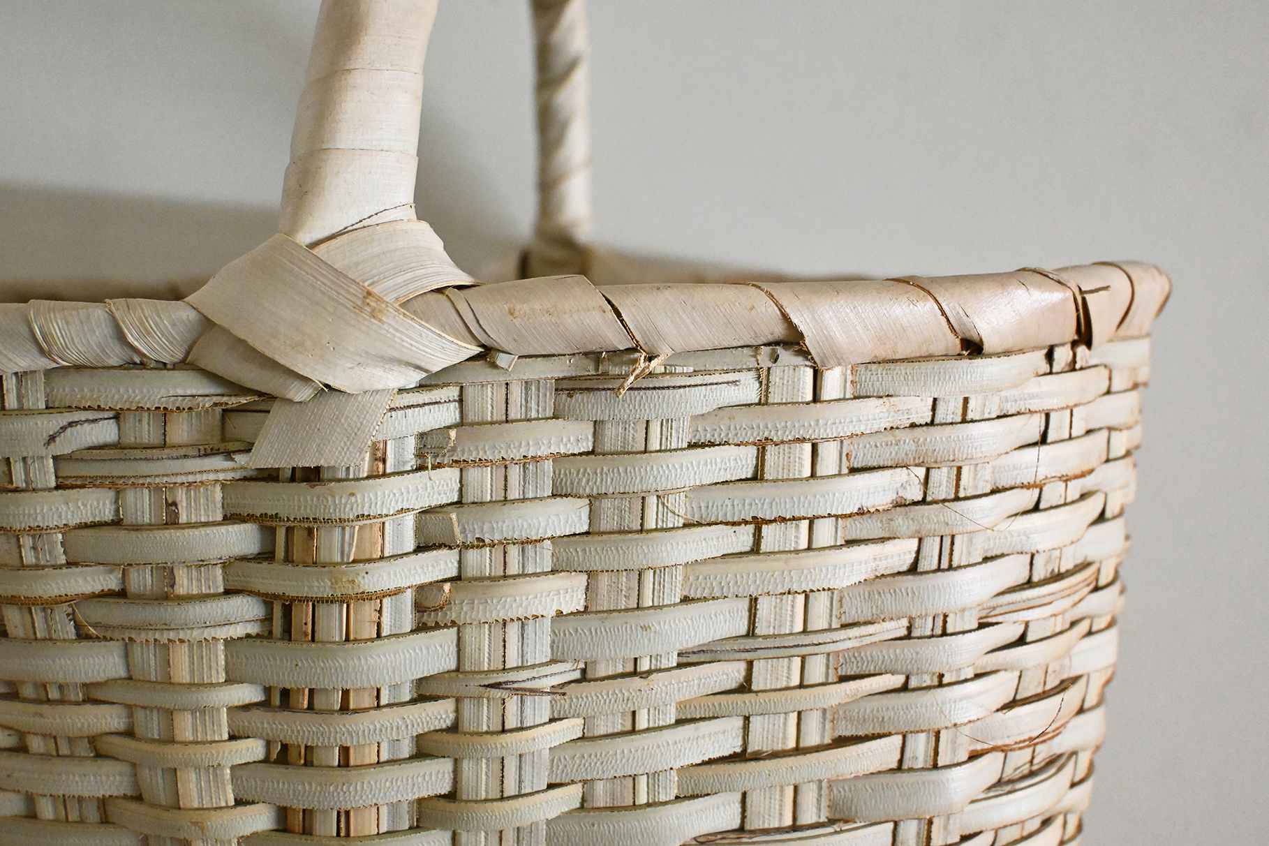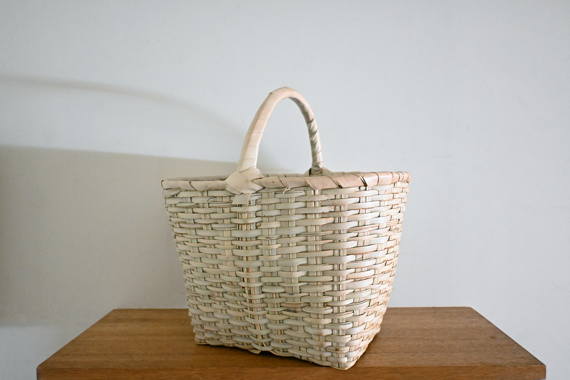 丈夫な水草で編んだ一本取っ手の手提かごです。
