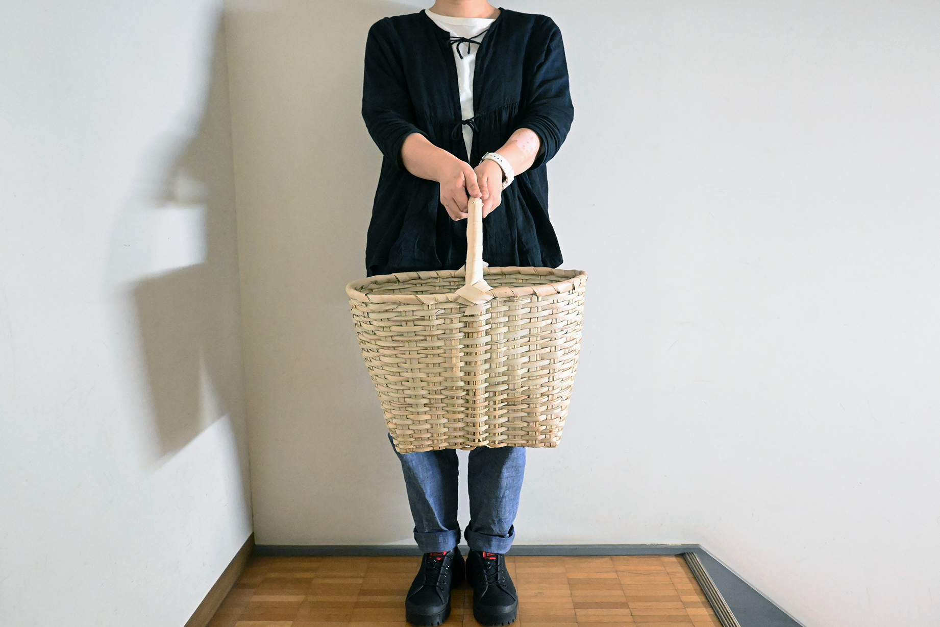 ナチュラルな質感でコーディネイトしやすいカゴバッグです。