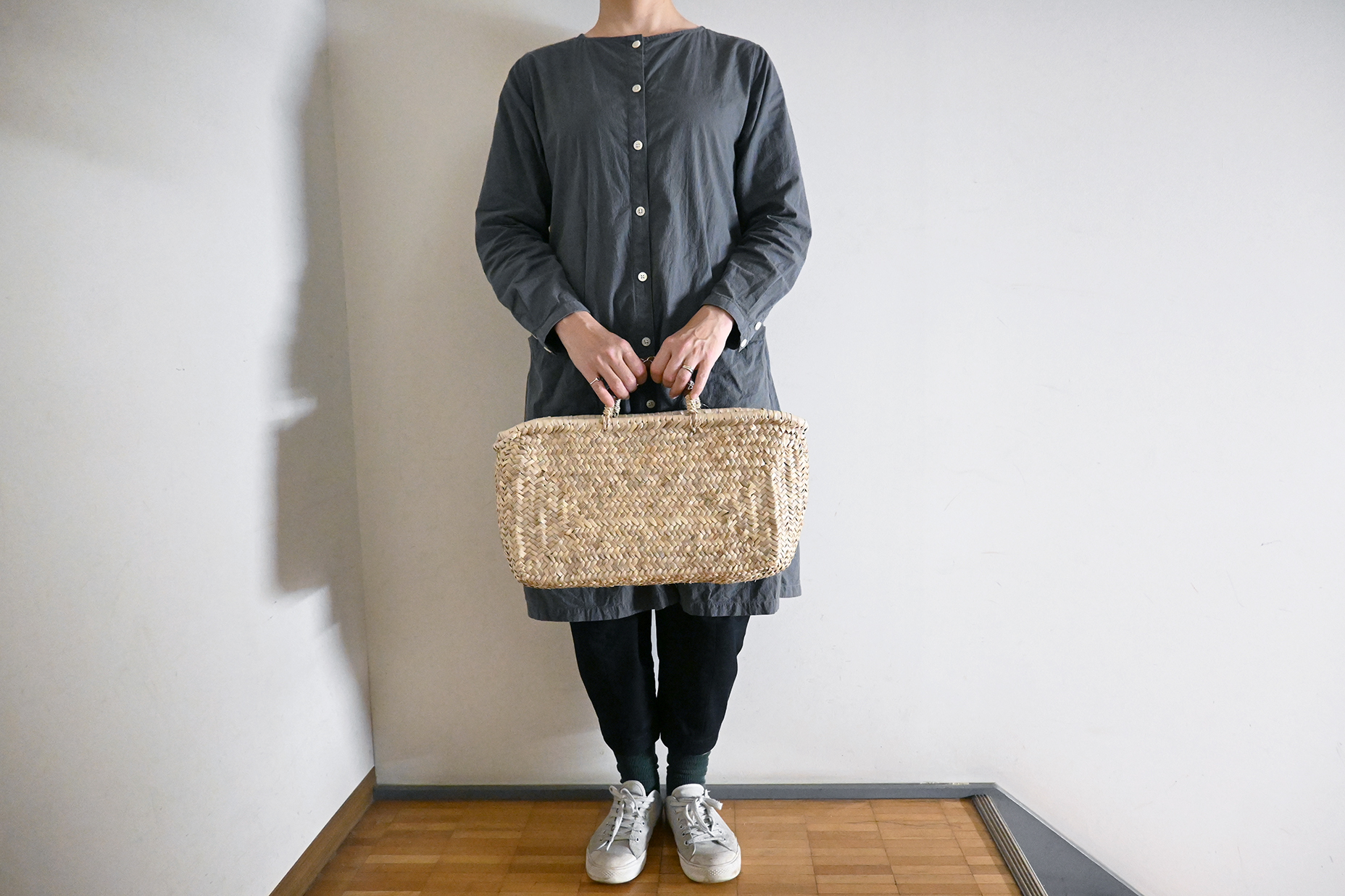 どんなお洋服にも合わせやすく、お出かけやお買い物に丁度いいサイズ感です。
