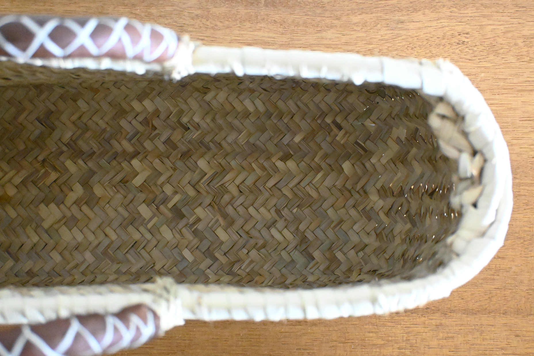 表面がツルツルしたストロー素材と、丈夫なドームが美しく編み上げられています。