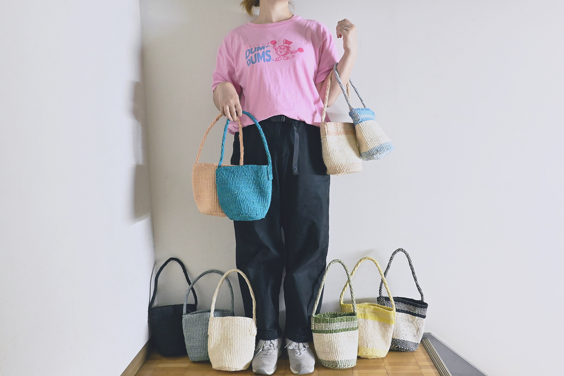 サイザル共手トートバッグワンハンドルミニ ミックスカラー