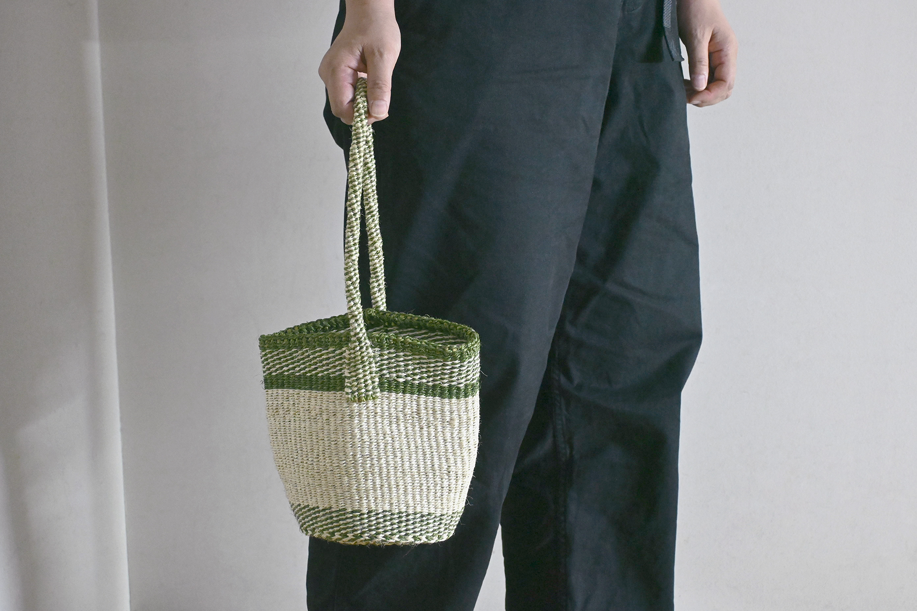 サイザル共手トートバッグワンハンドルミニ ムジ