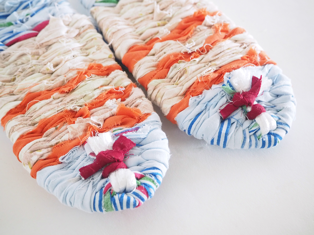 ビニールひもを芯にぼろの生地を巻き、