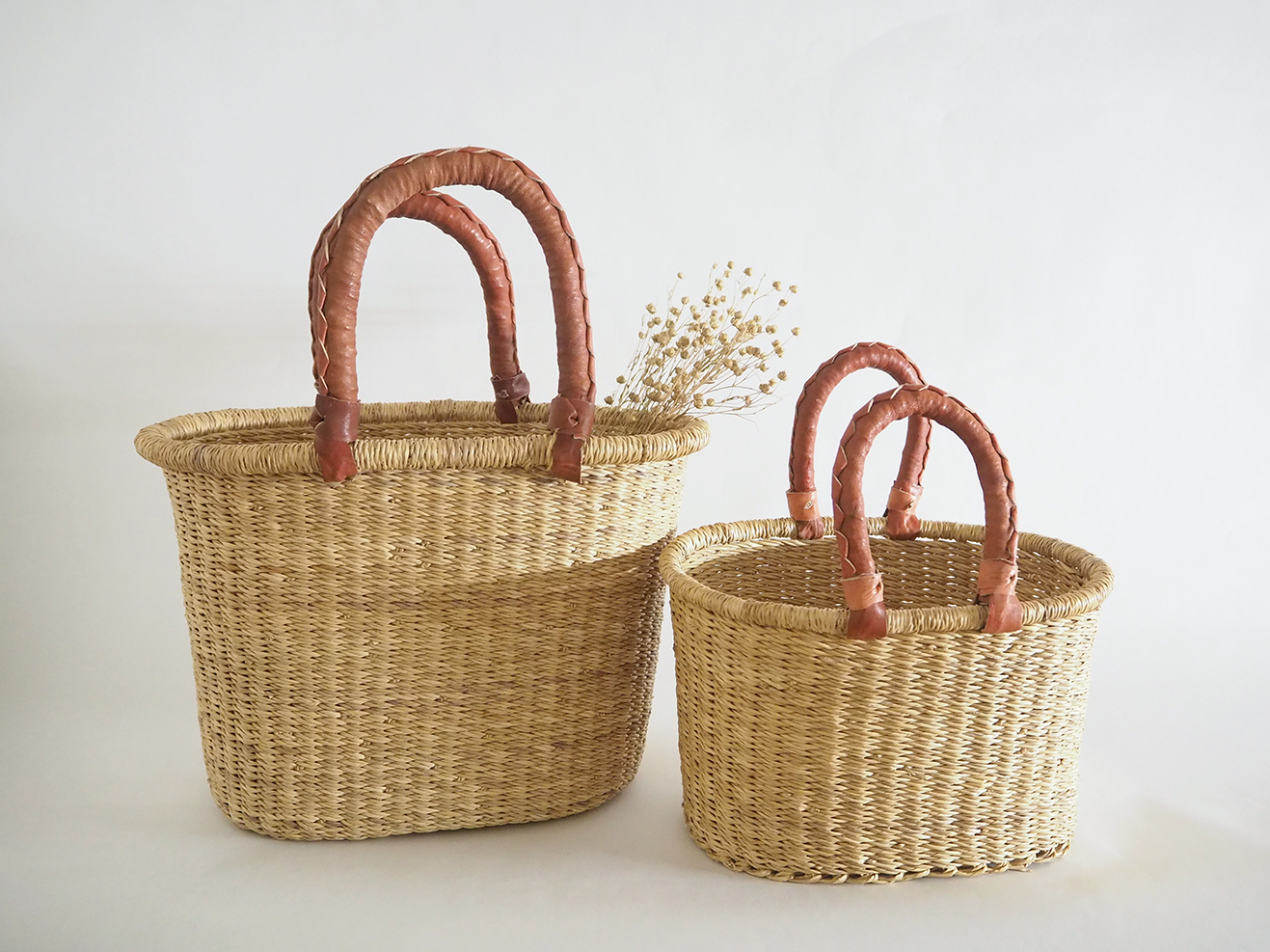 エレファントグラスでできたバスケット。