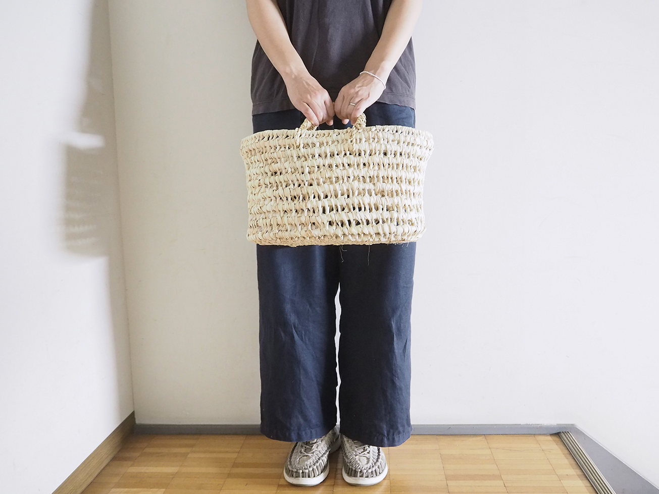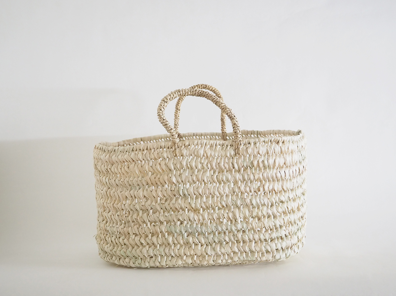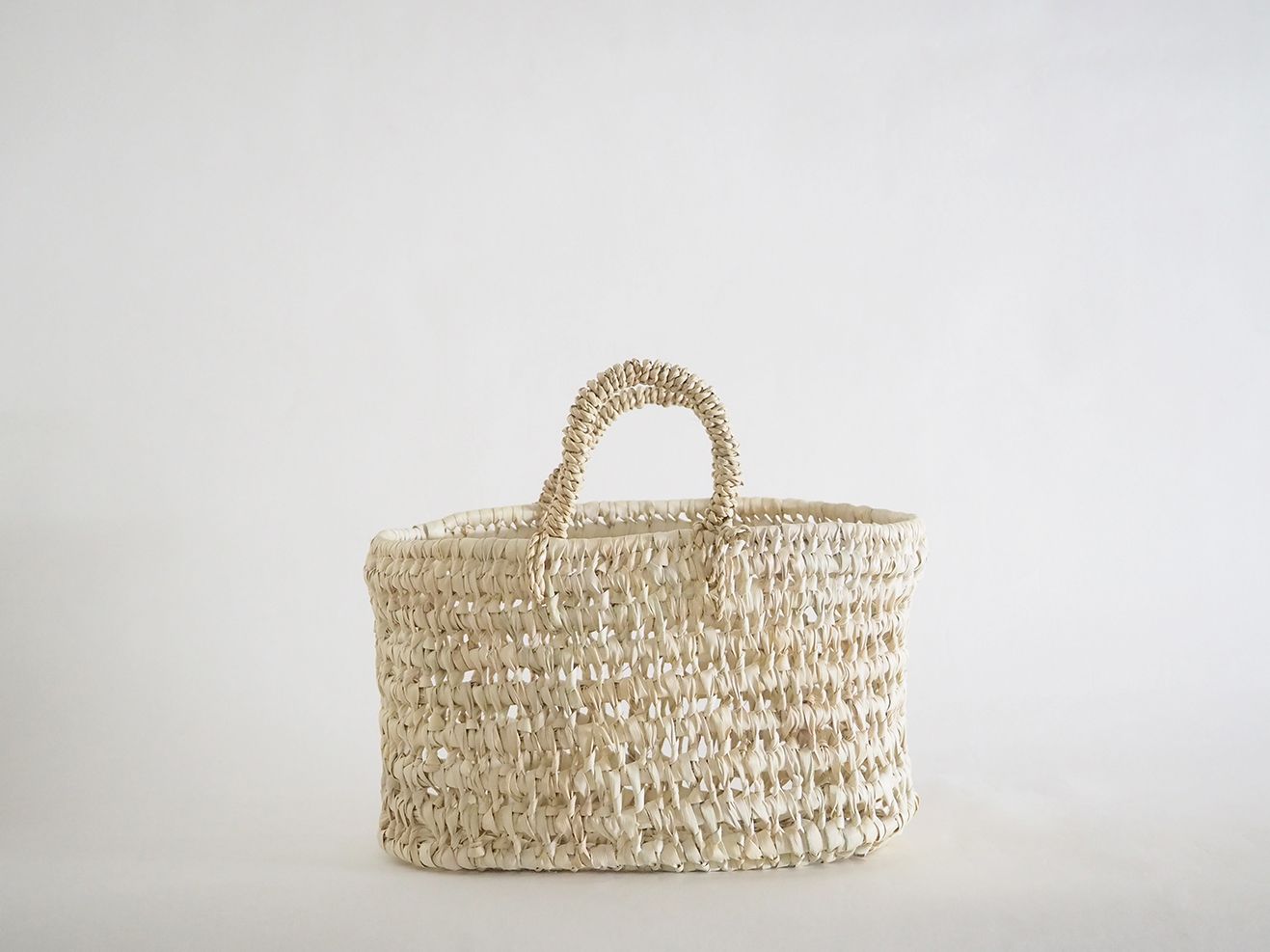 椰子の葉で編みあげた楕円底バスケットです。