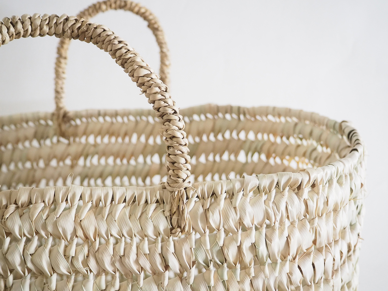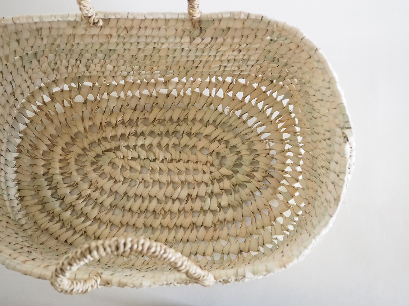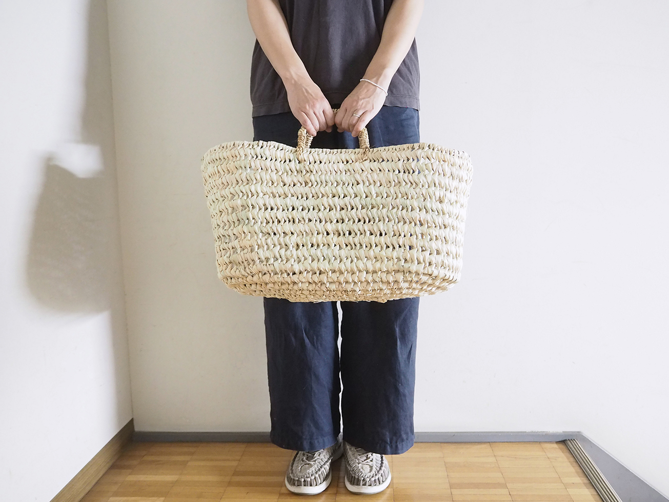 椰子の葉で編みあげた楕円底バスケットです。