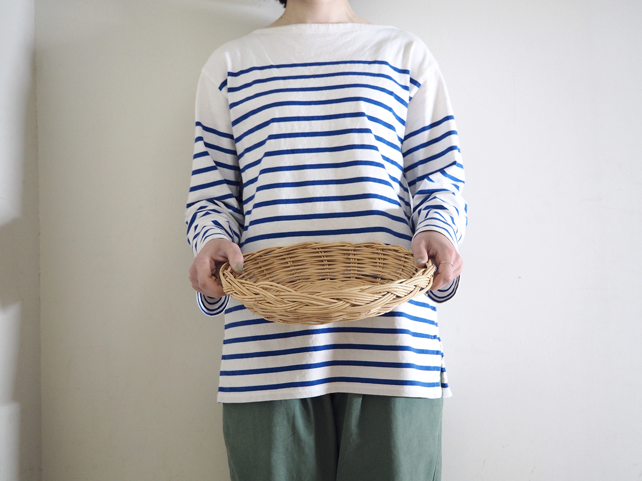 シンプルで飽きのこないデザインのラウンド型のバスケットです。