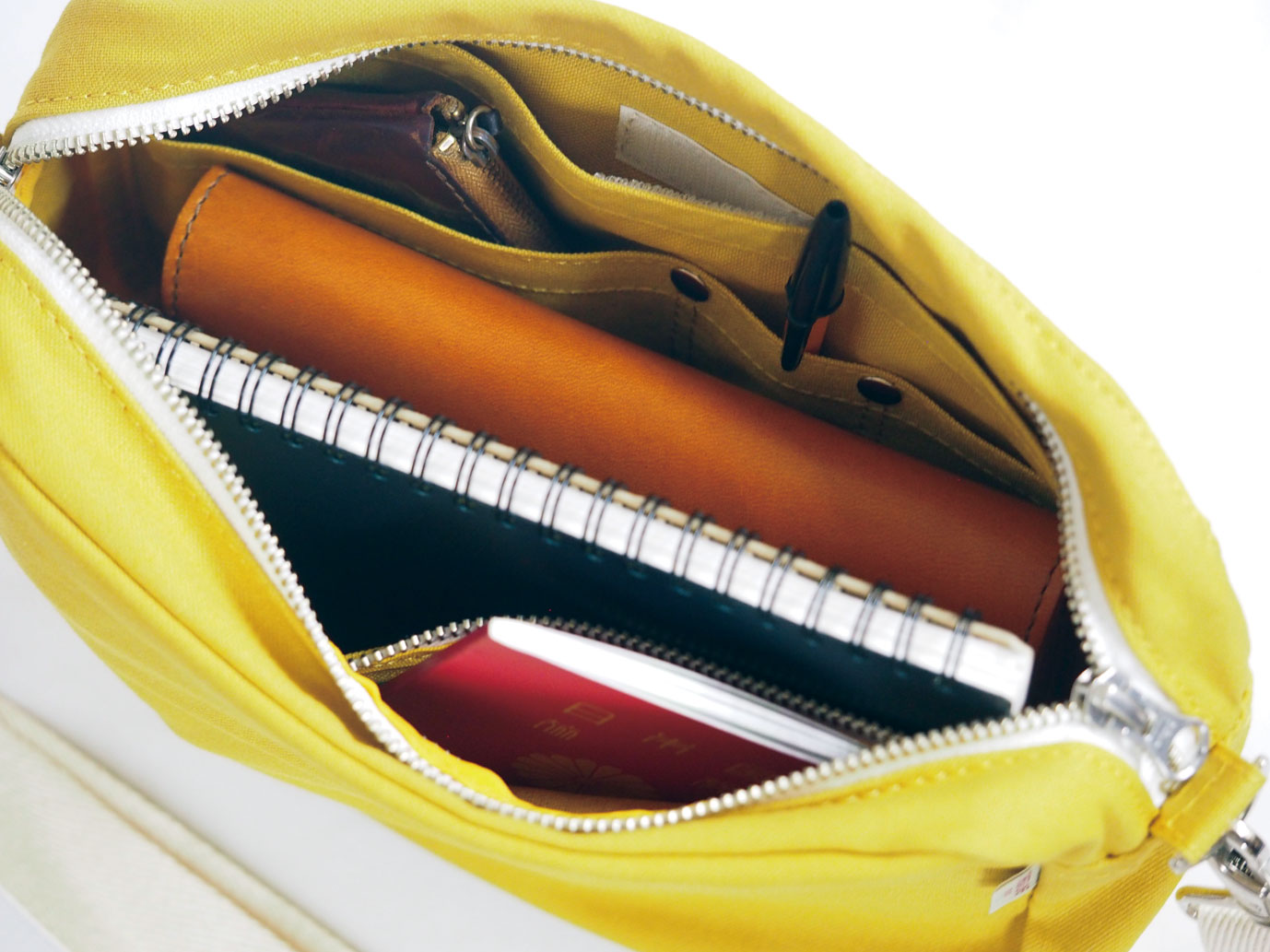 内部にもファスナー付中ポケットとペンや小物なども仕分けできる小さなポケットもついて、