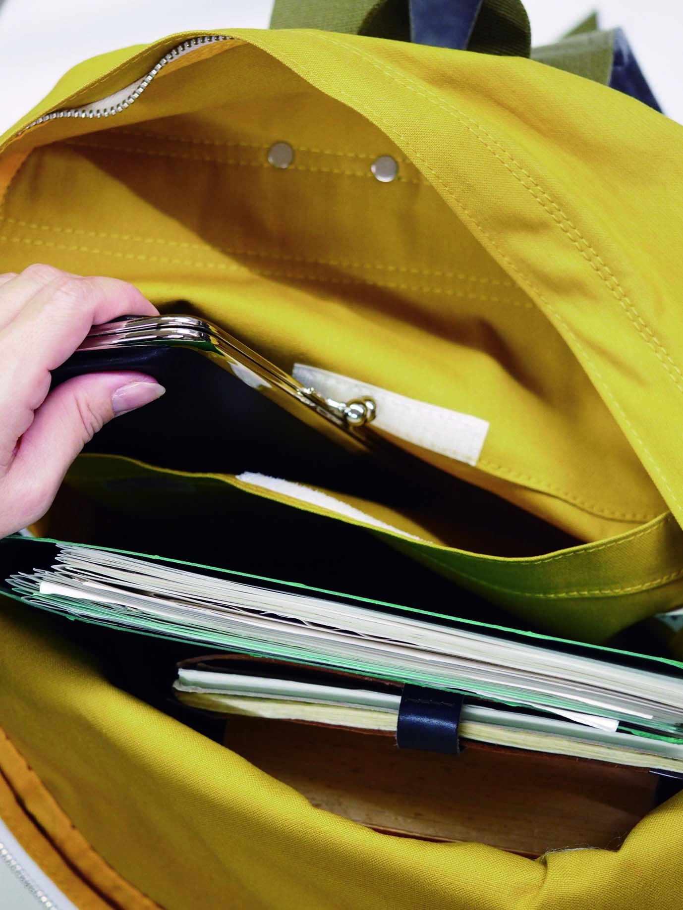 フロントポケットの内側には小物やペンなどを収納するポケットがついています。