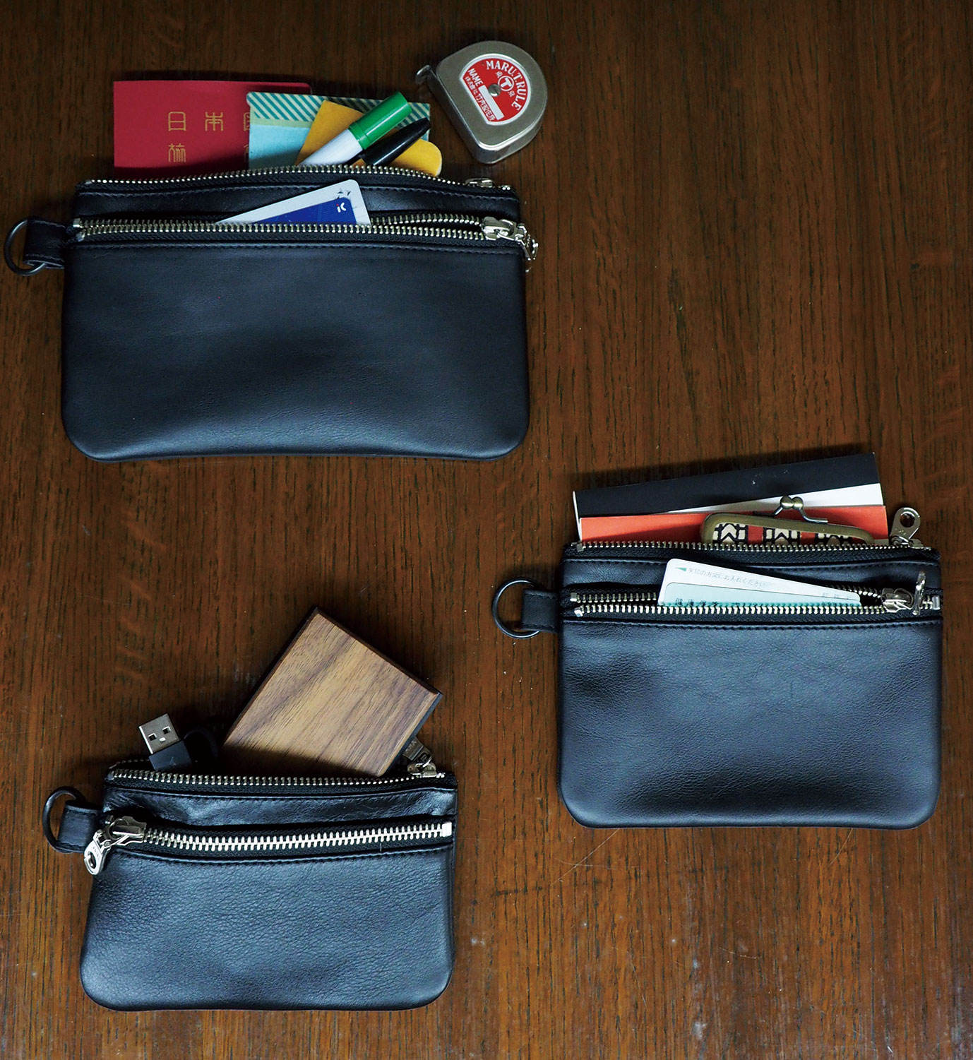 小のサイズはモバイルバッテリーやUSBメモリなどのアクセサリ入れにも。