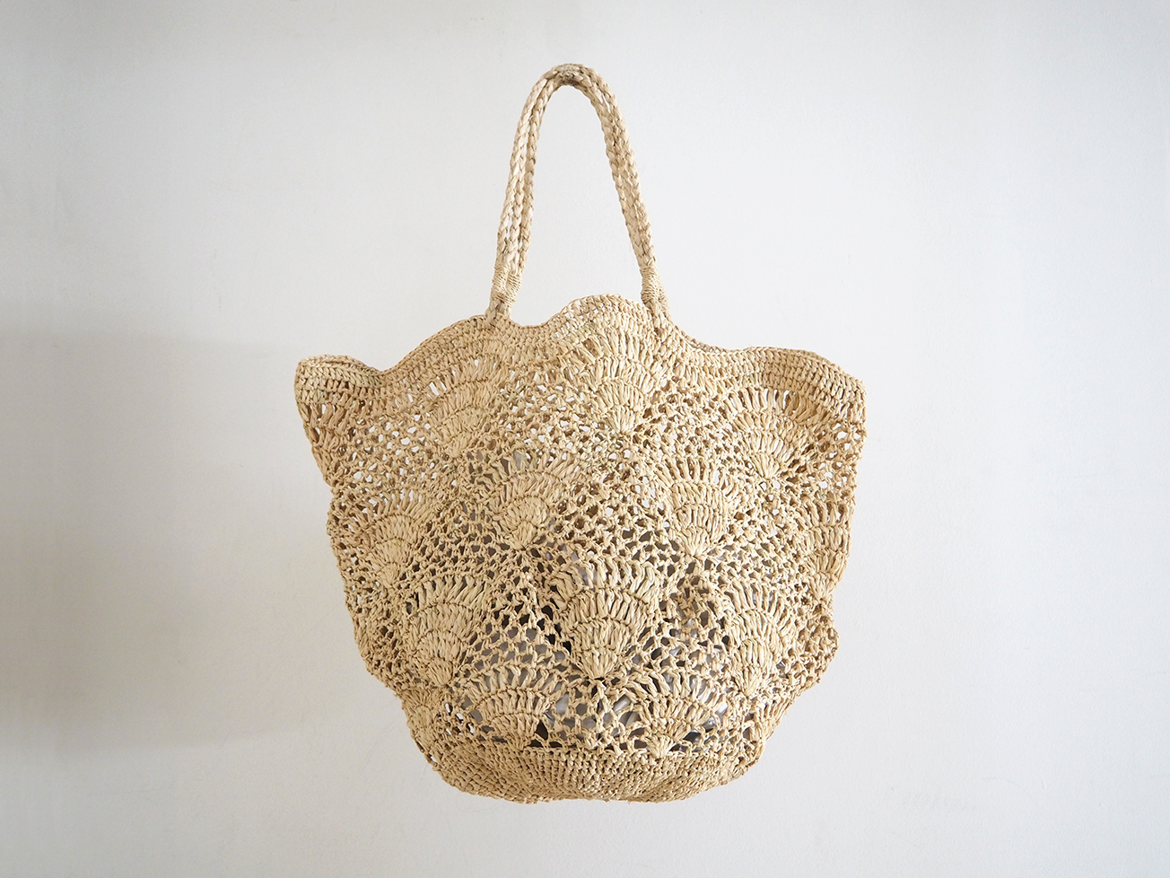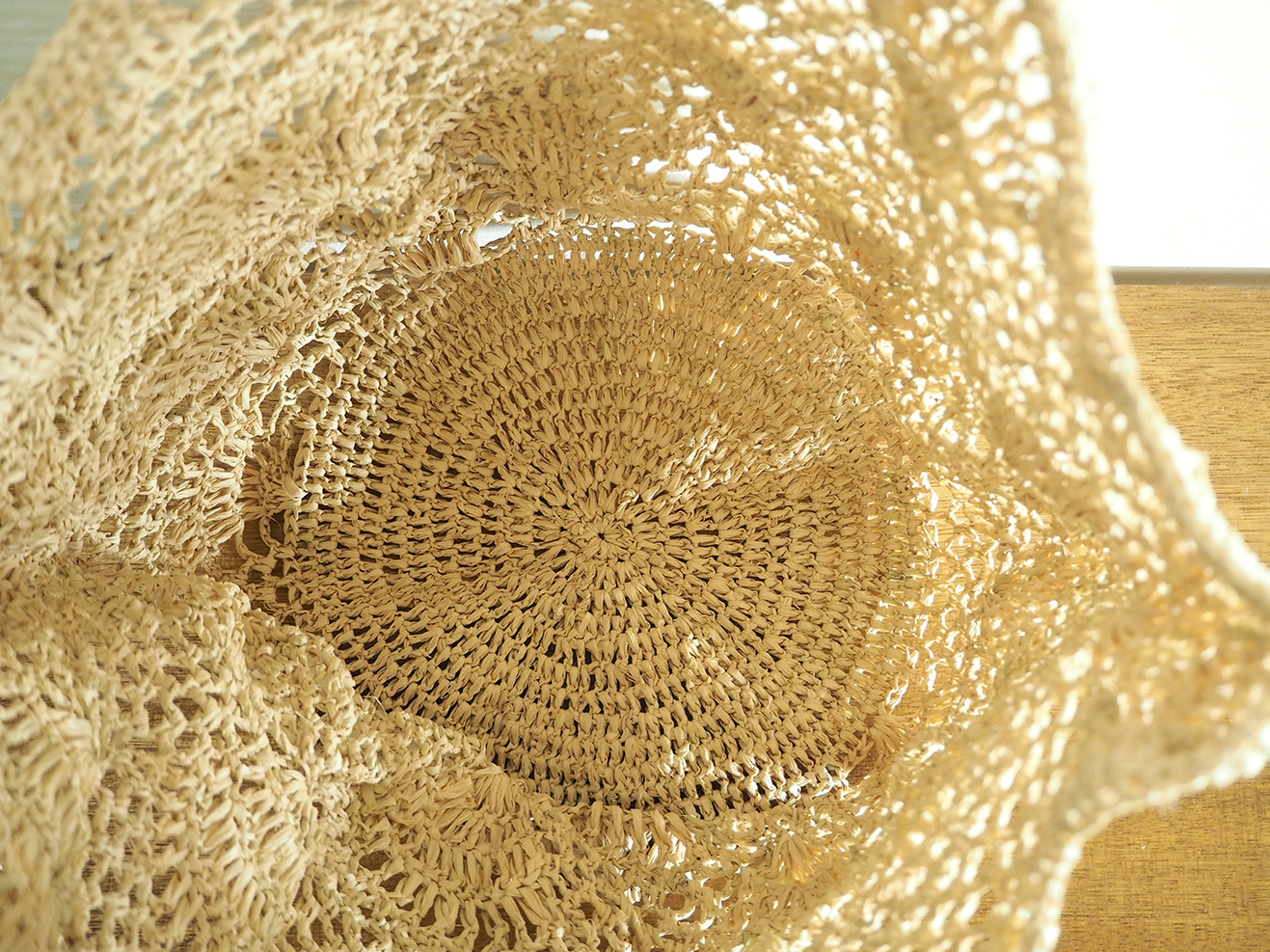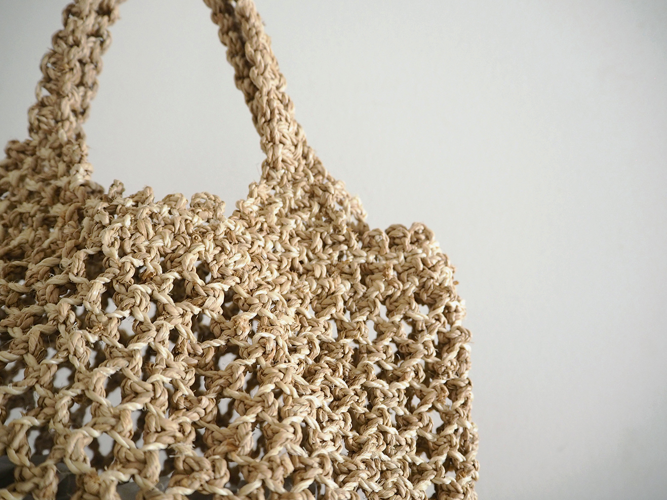 ラフィアかぎ編みバッグ丸底パイナップル柄