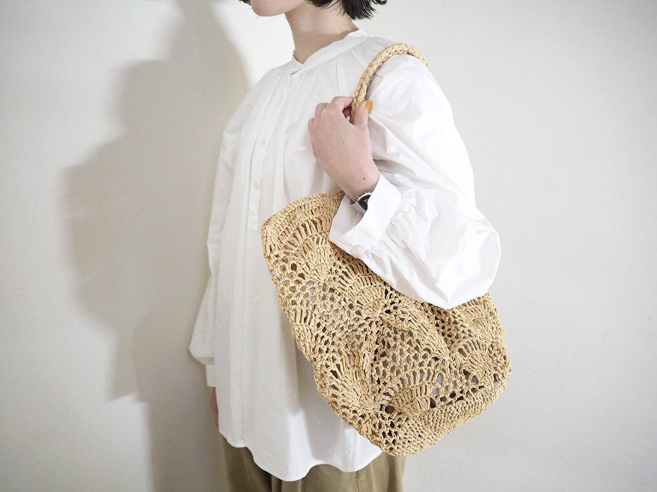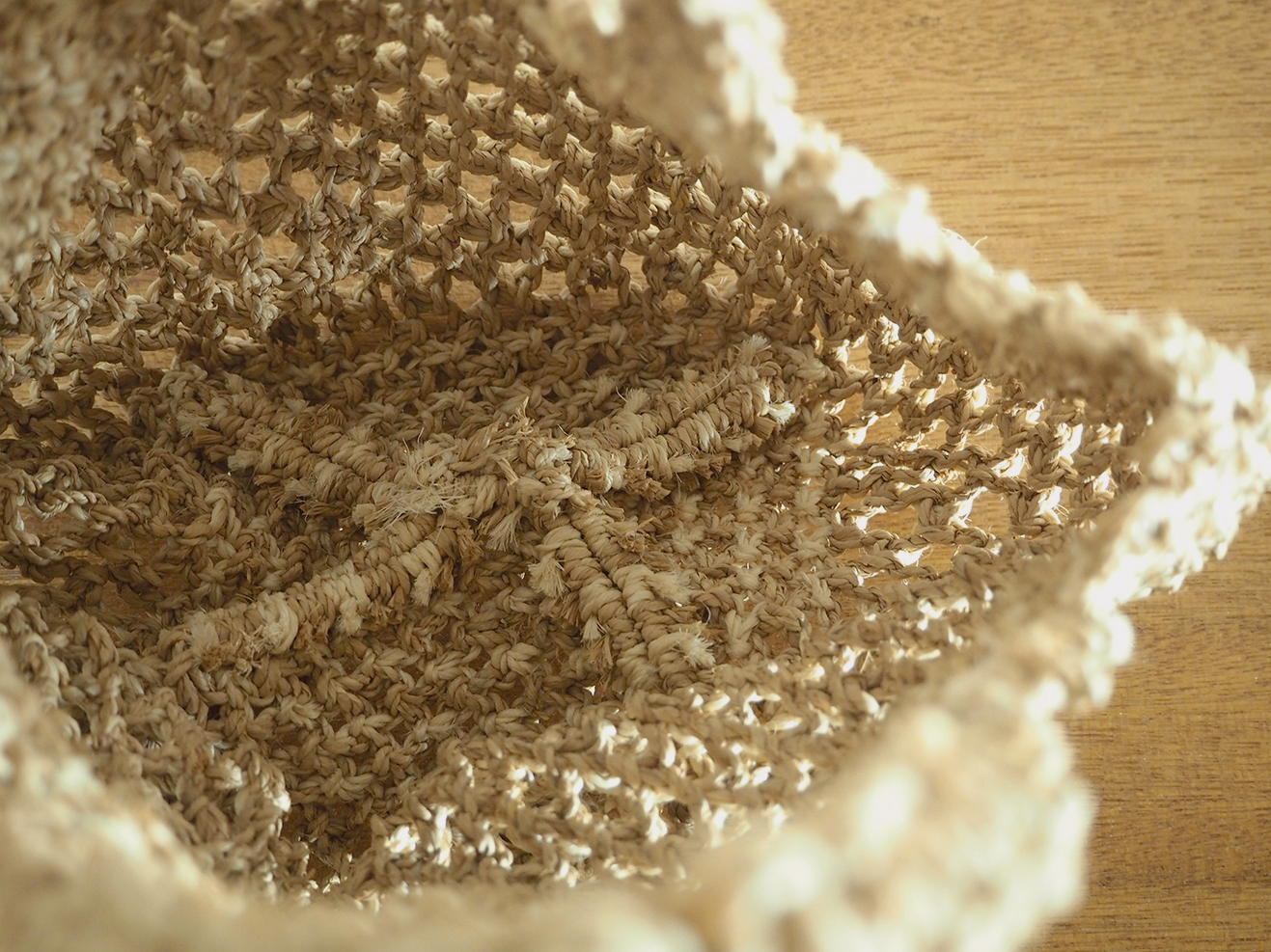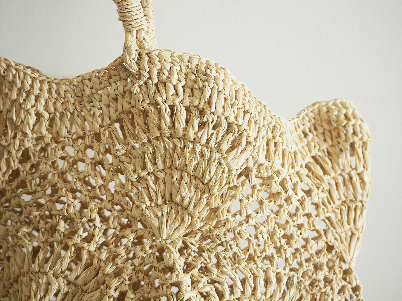 ラフィアかぎ編みバッグ丸底パイナップル柄