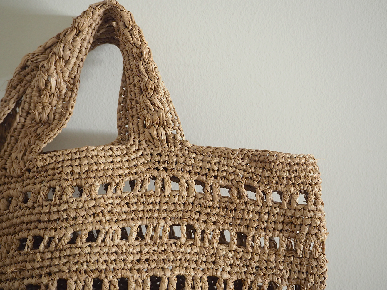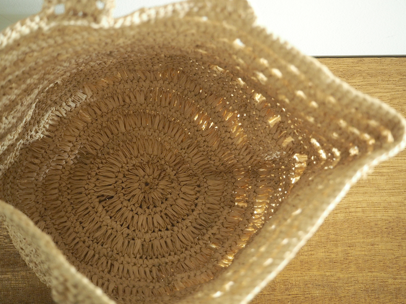 ラフィアかぎ編みバッグミニ透かしボーダー