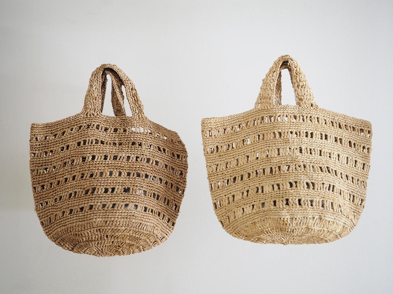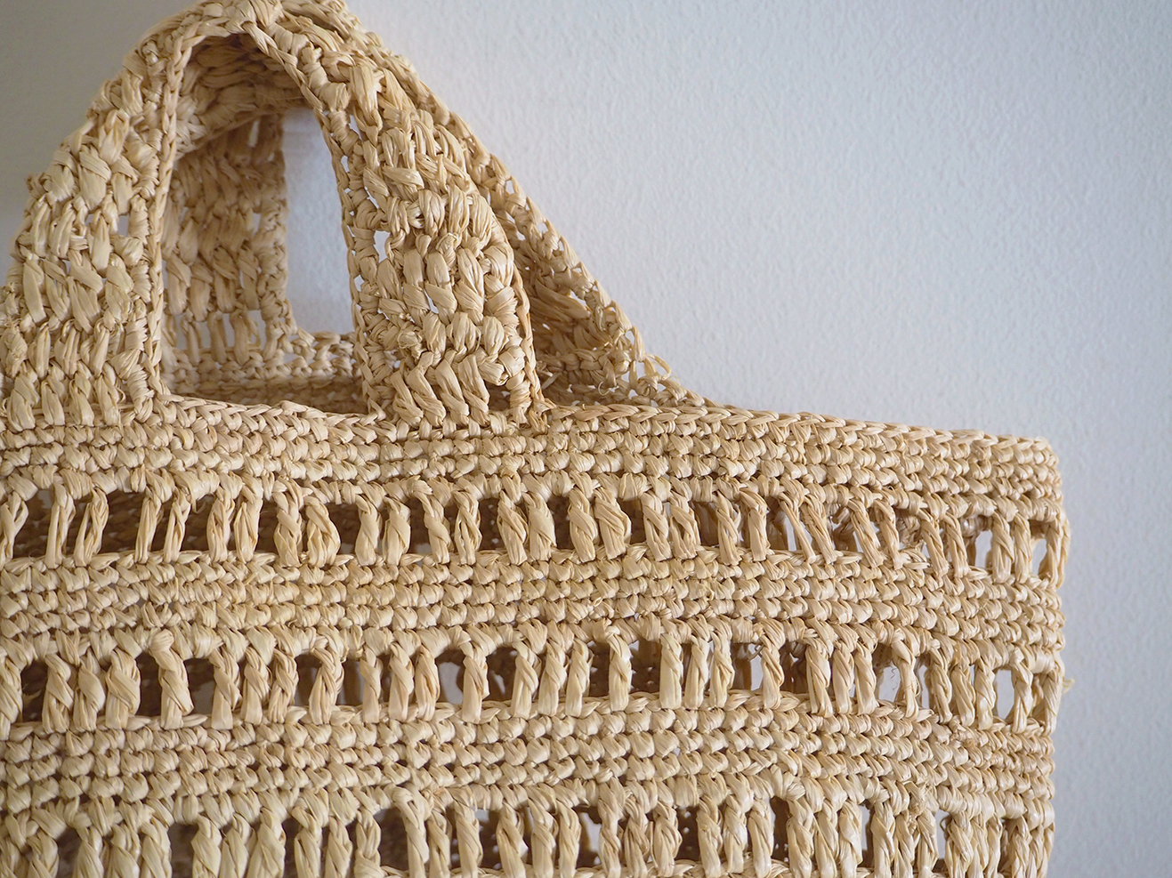 ラフィアかぎ編みバッグミニ透かしボーダーのご紹介です。
