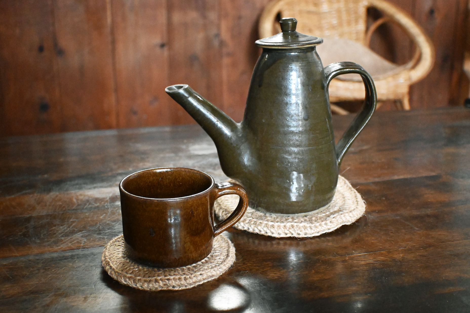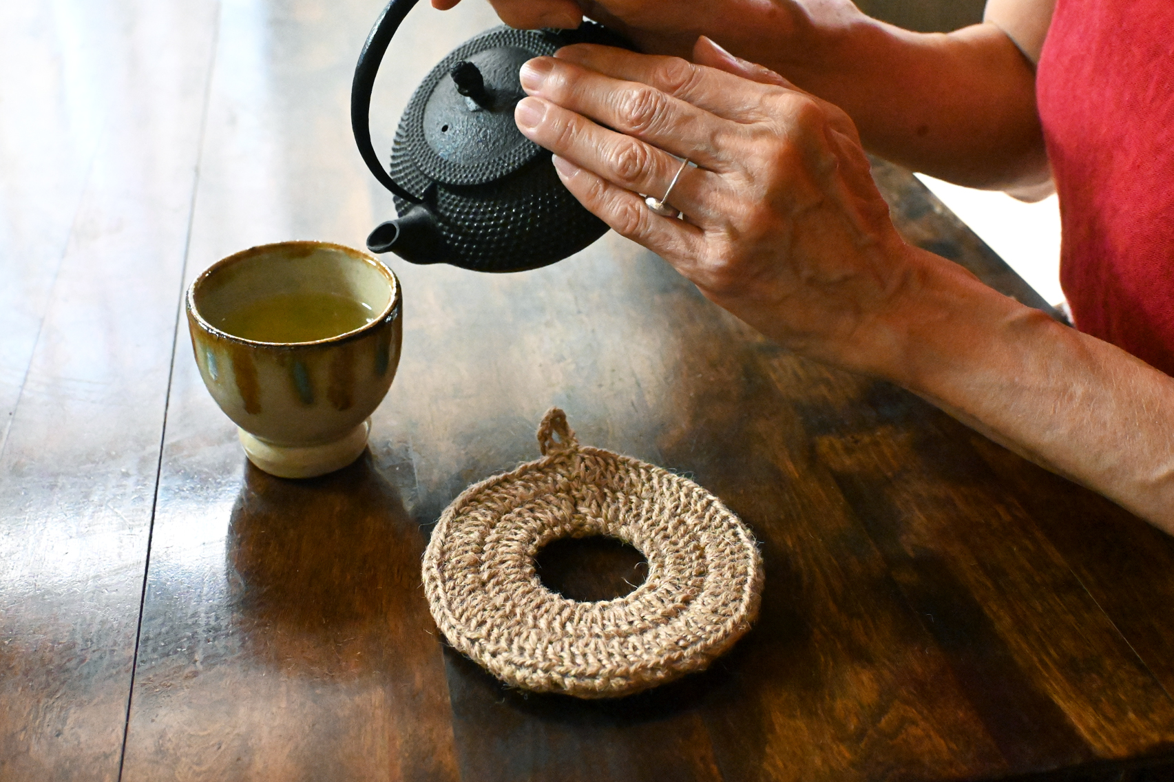 松野屋オリジナル商品の、麻ひもで編まれた鍋敷き。