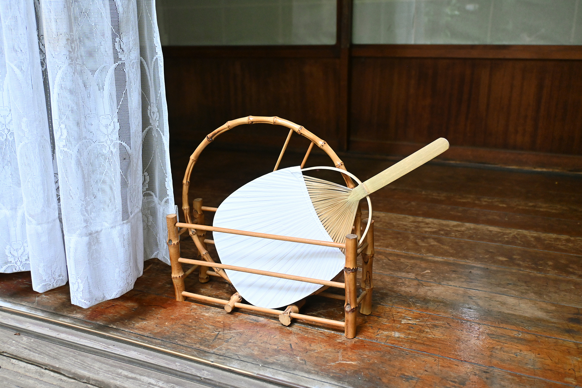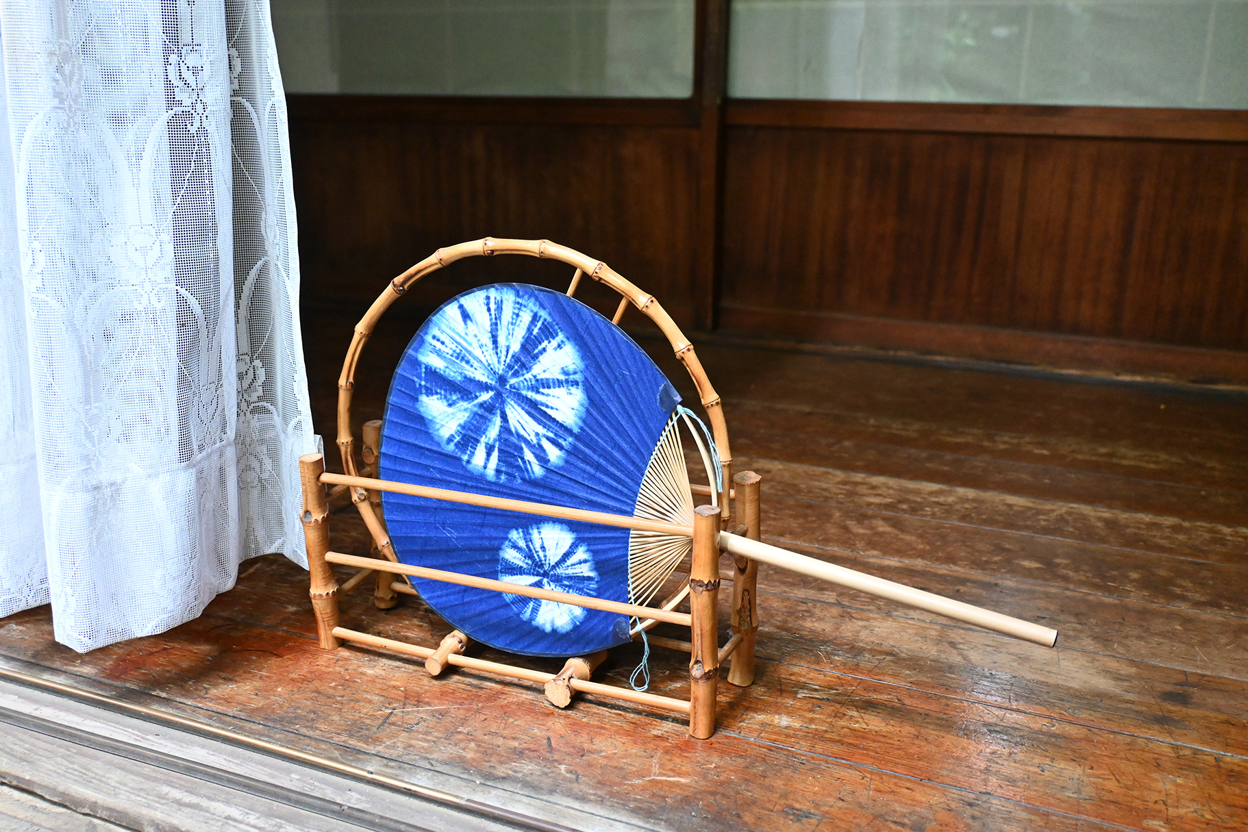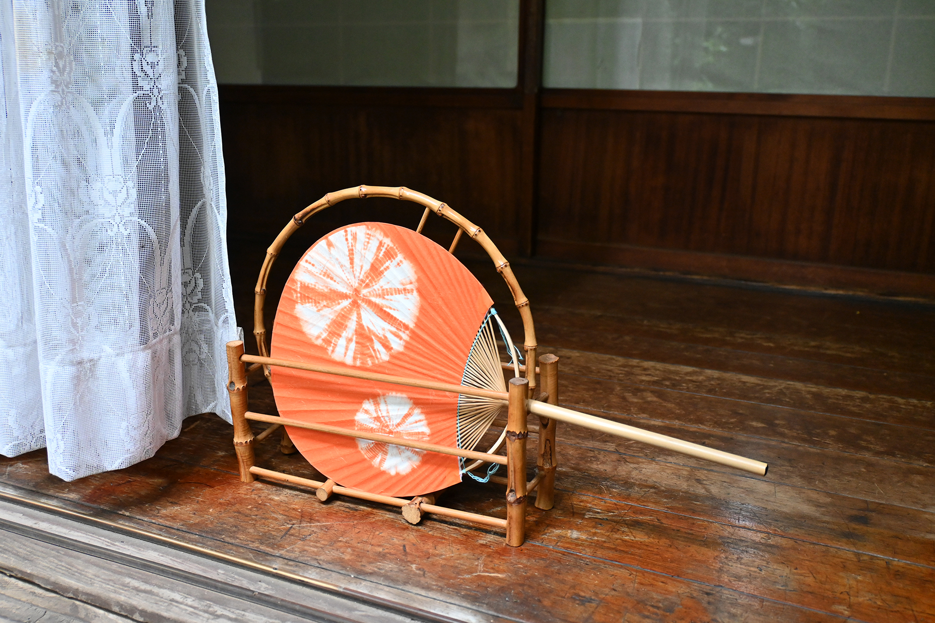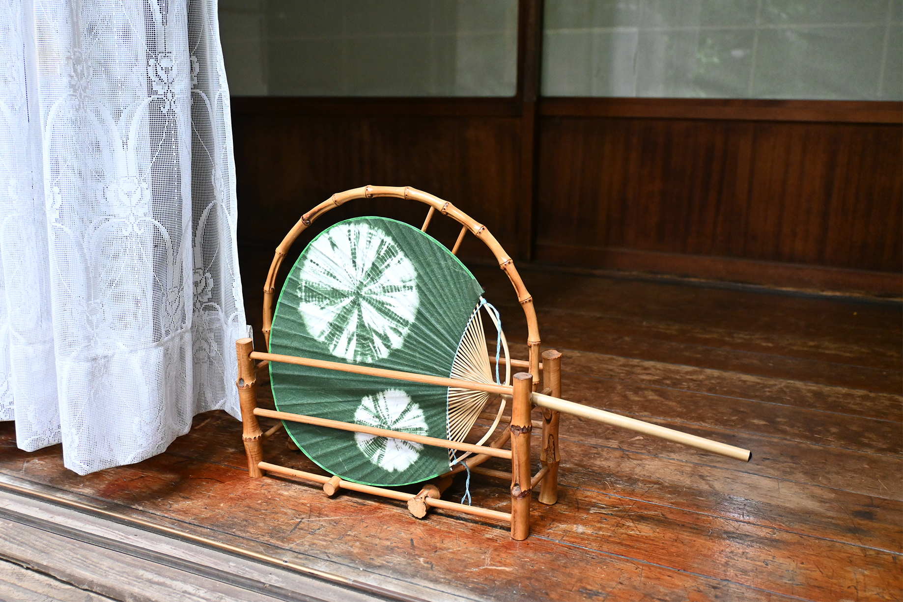 中満月うちわ絞り竹長丸柄