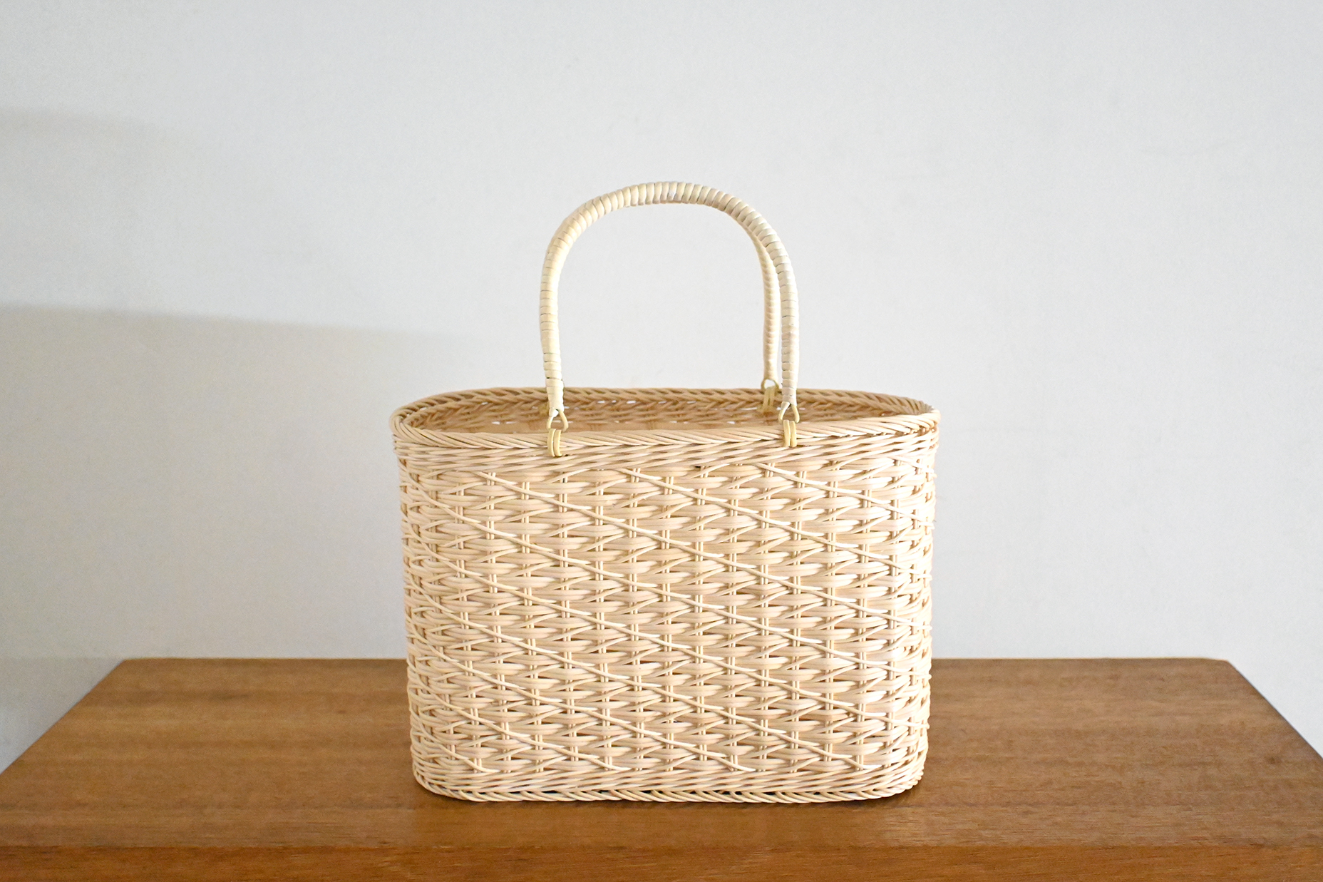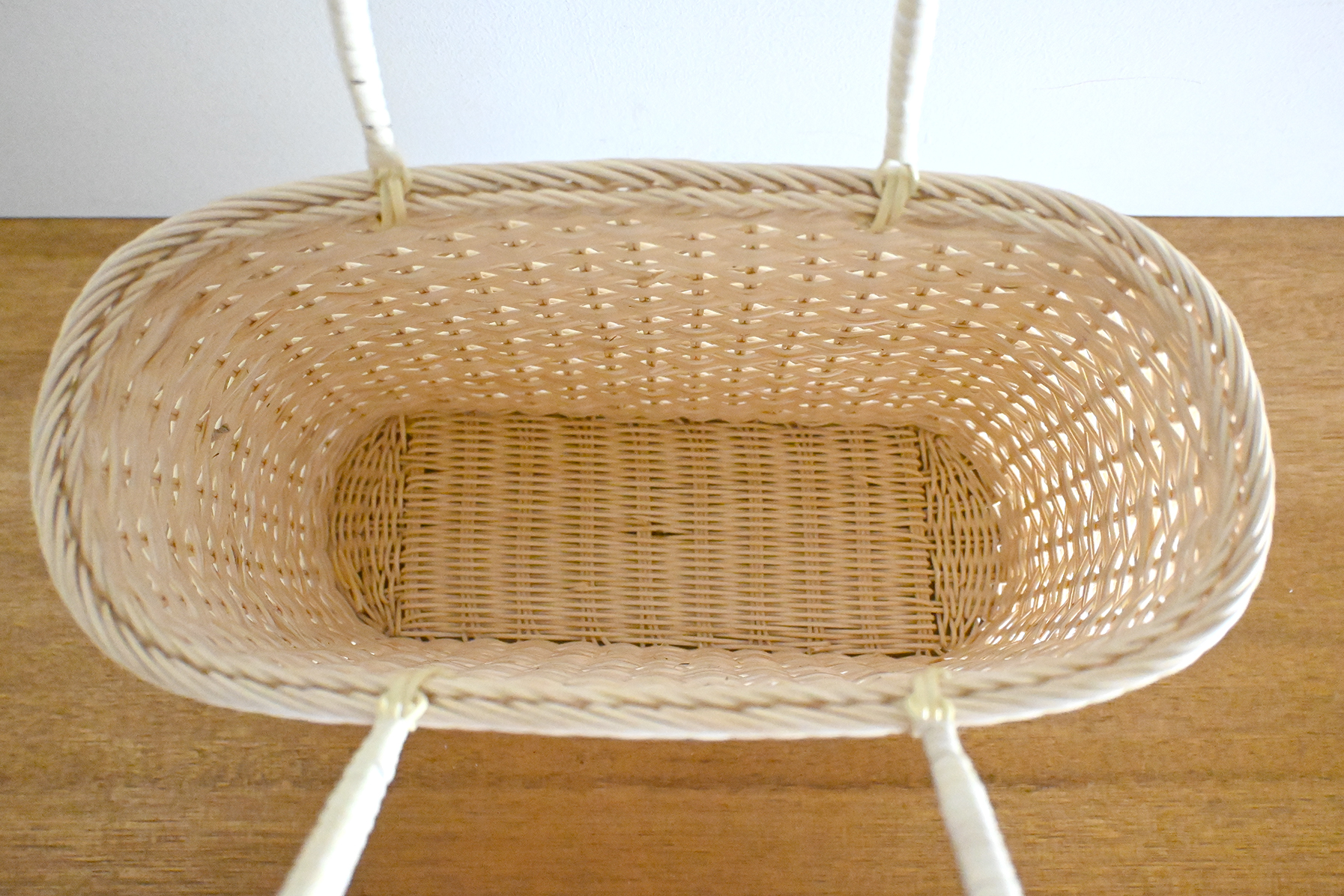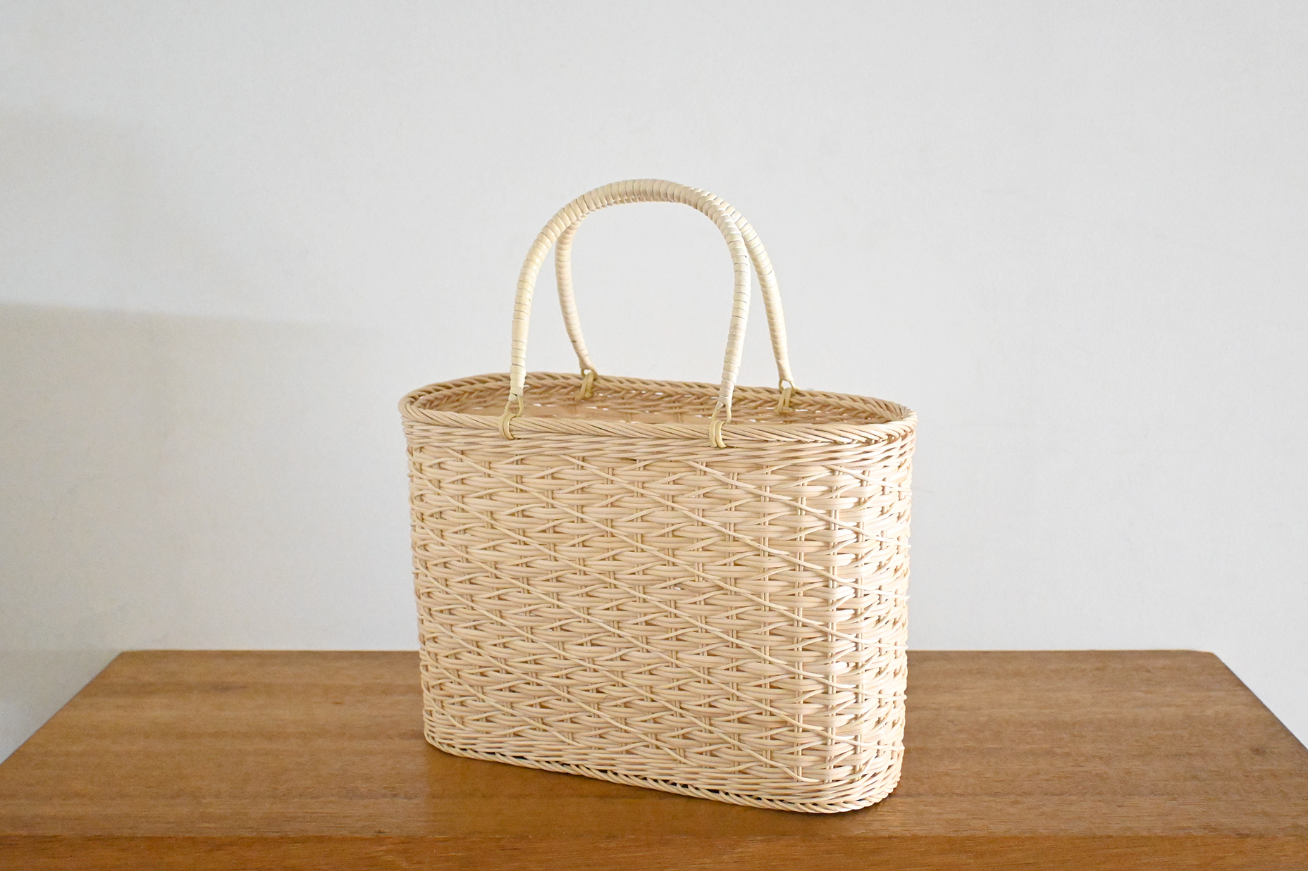籐小判片たすき編買物かご