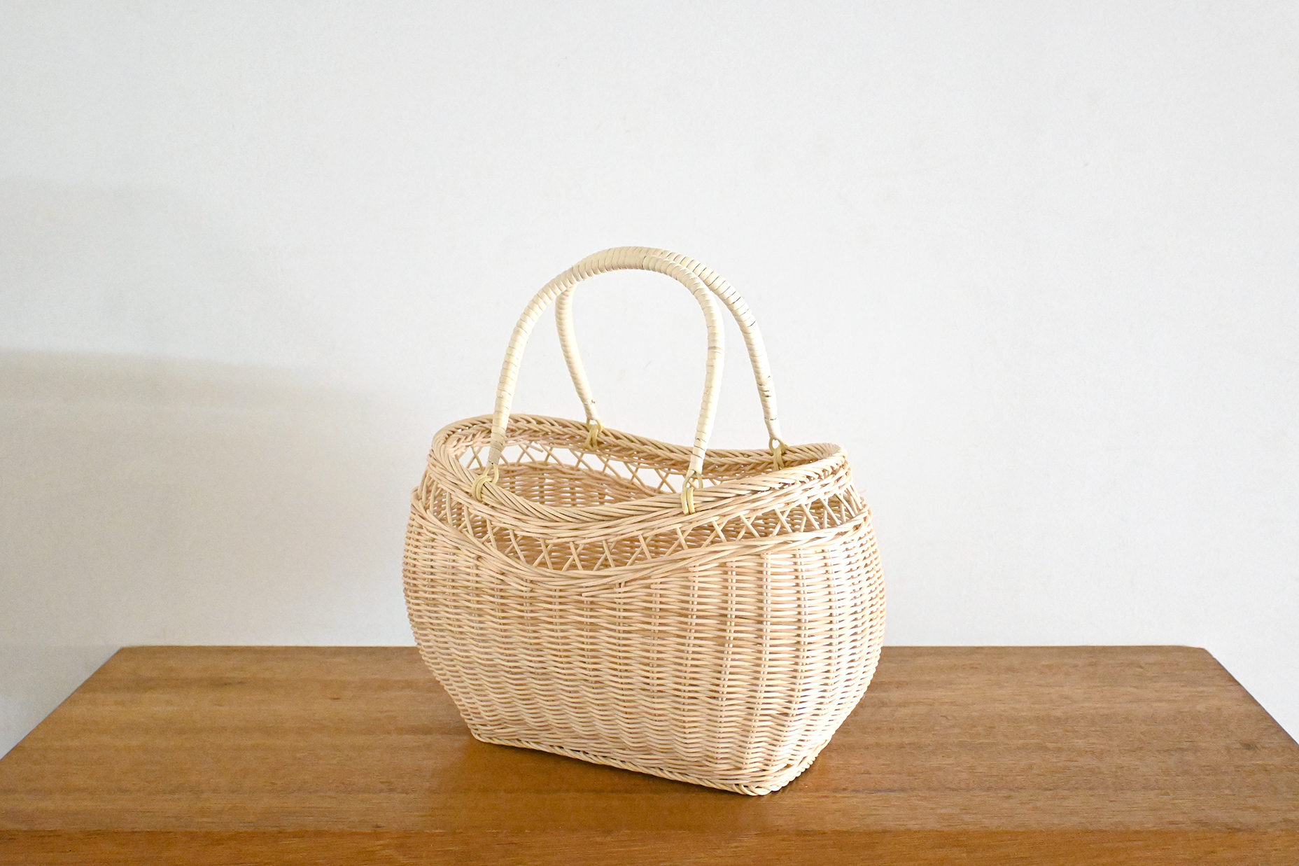 定番商品の籐の買物かごに小さめサイズが登場です。