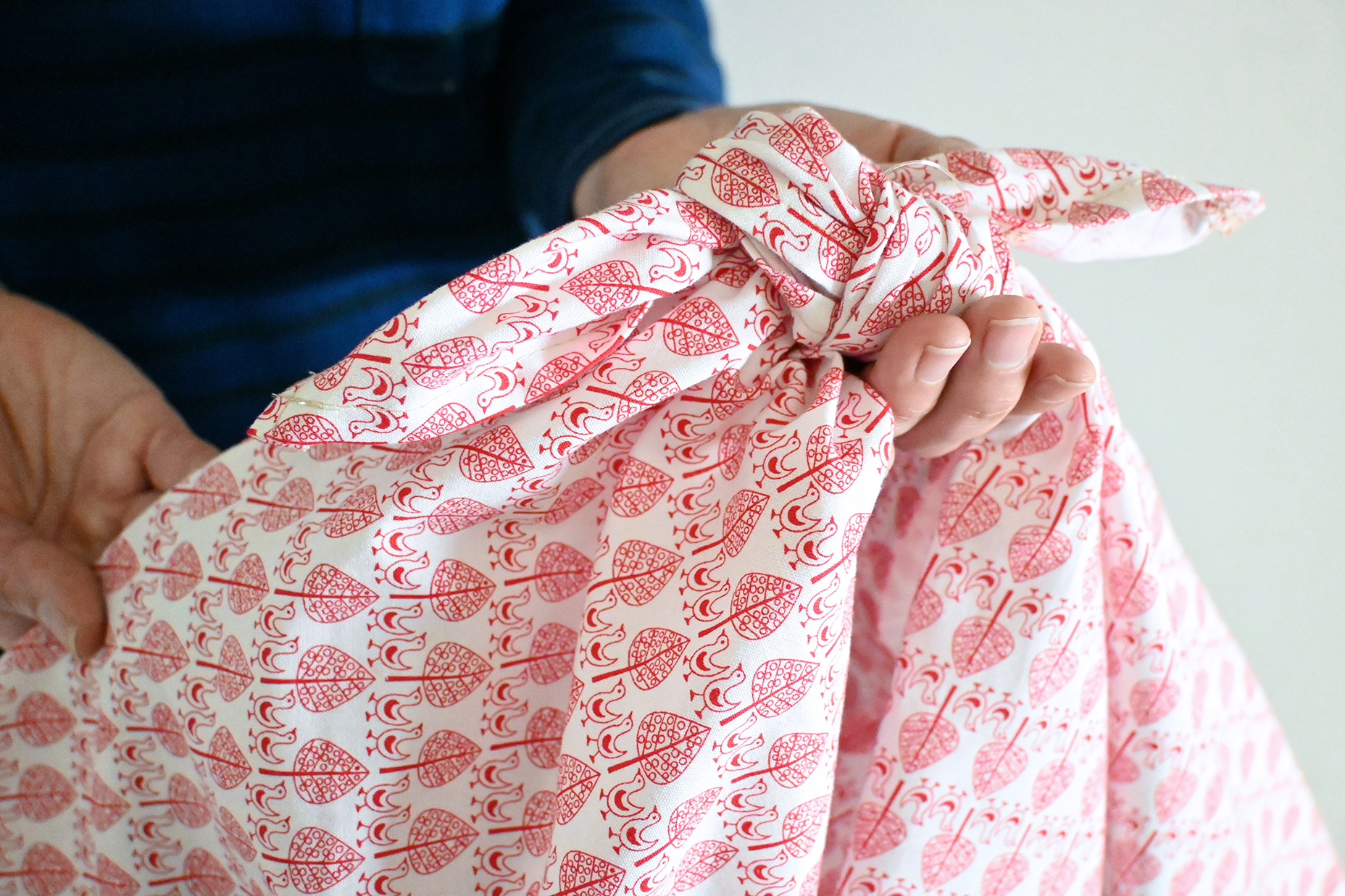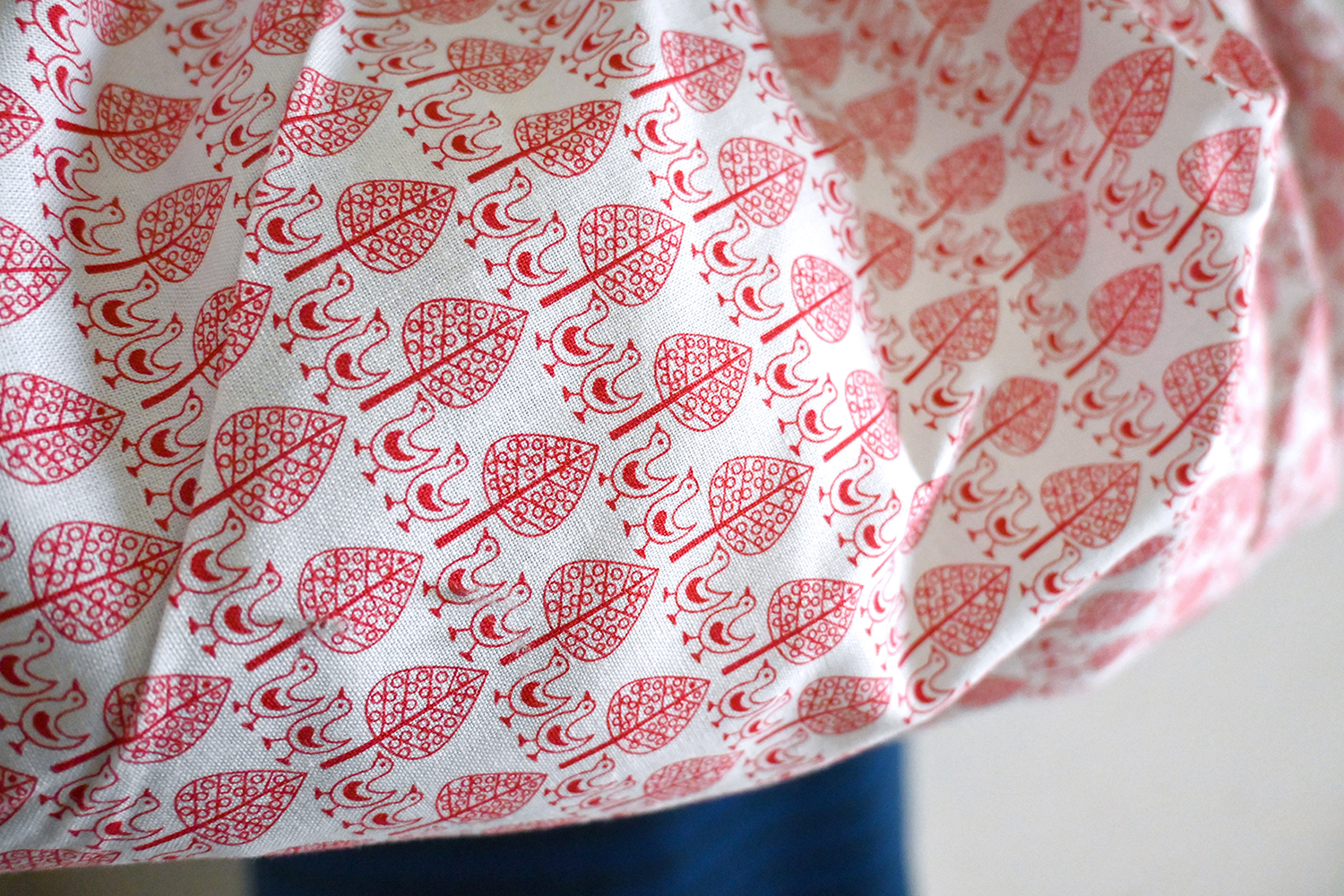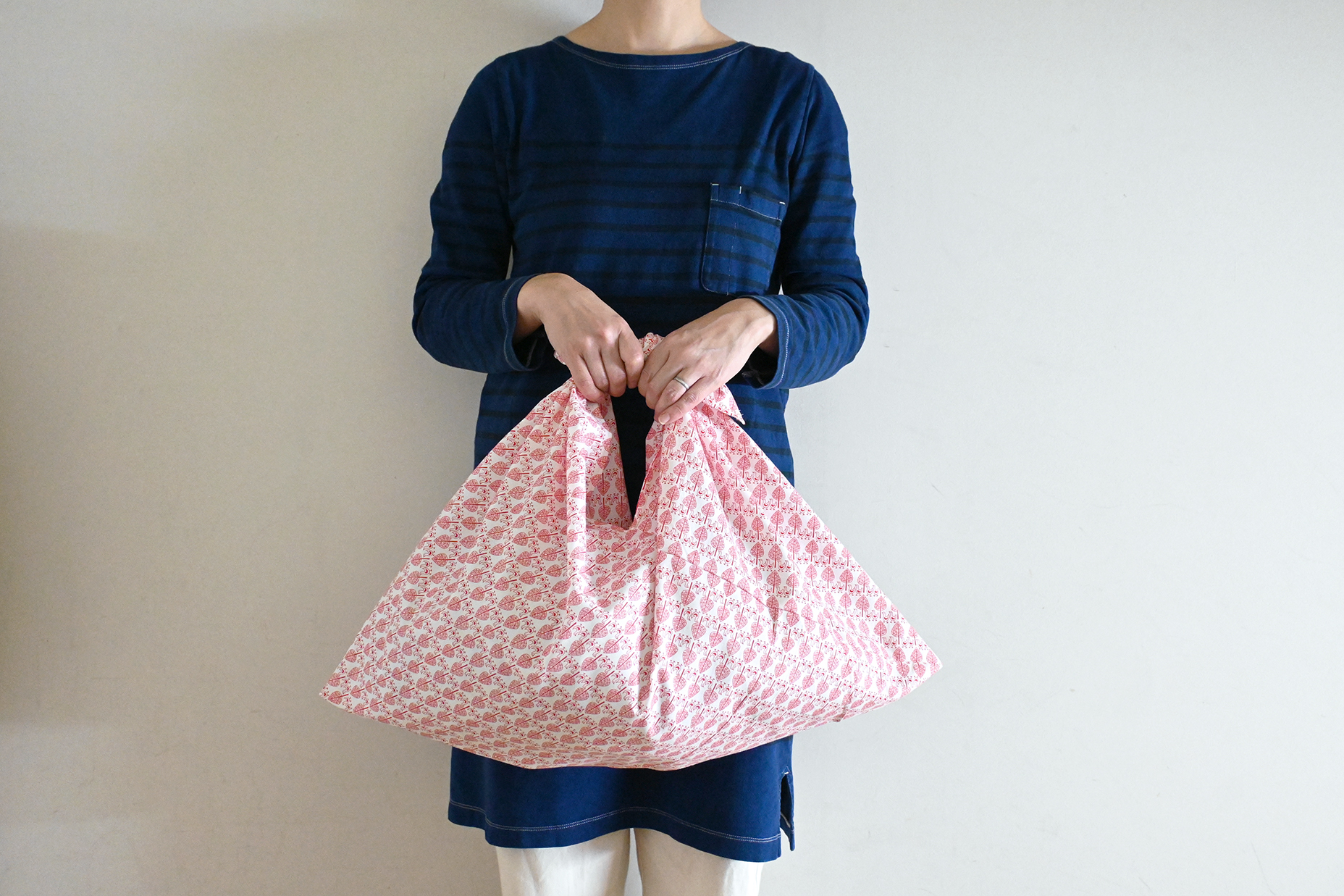 細かい鳥柄のコットン生地のあずま袋です。