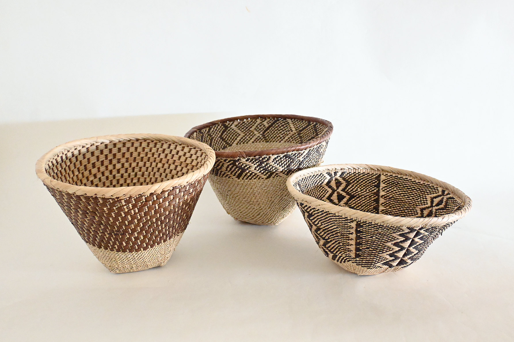 トンガの人たちが編みあげたすり鉢状のバスケットです。