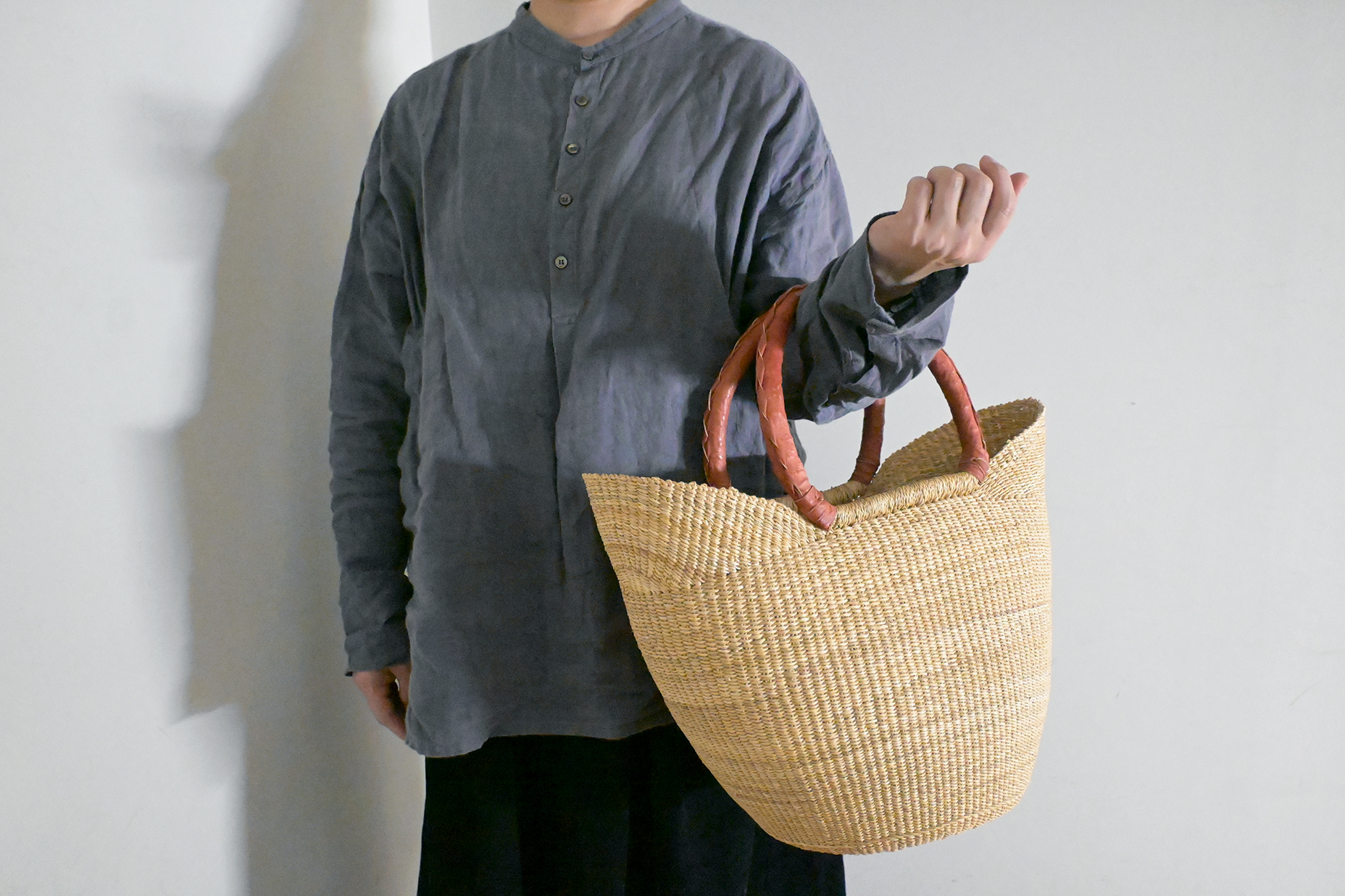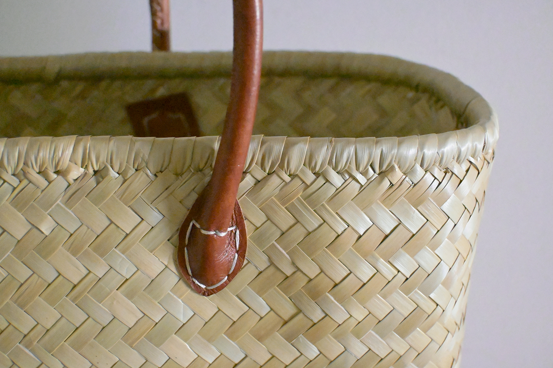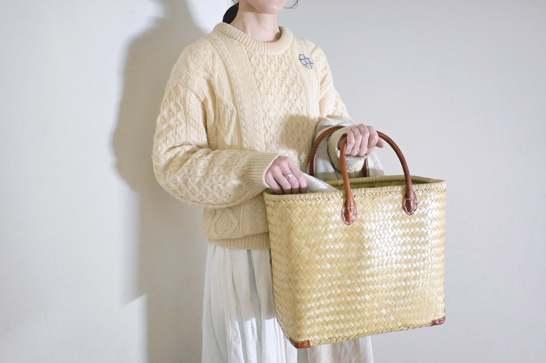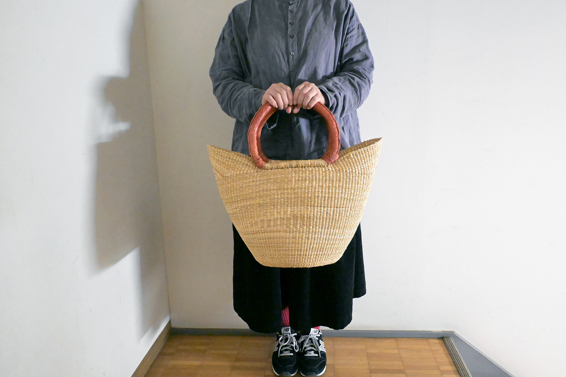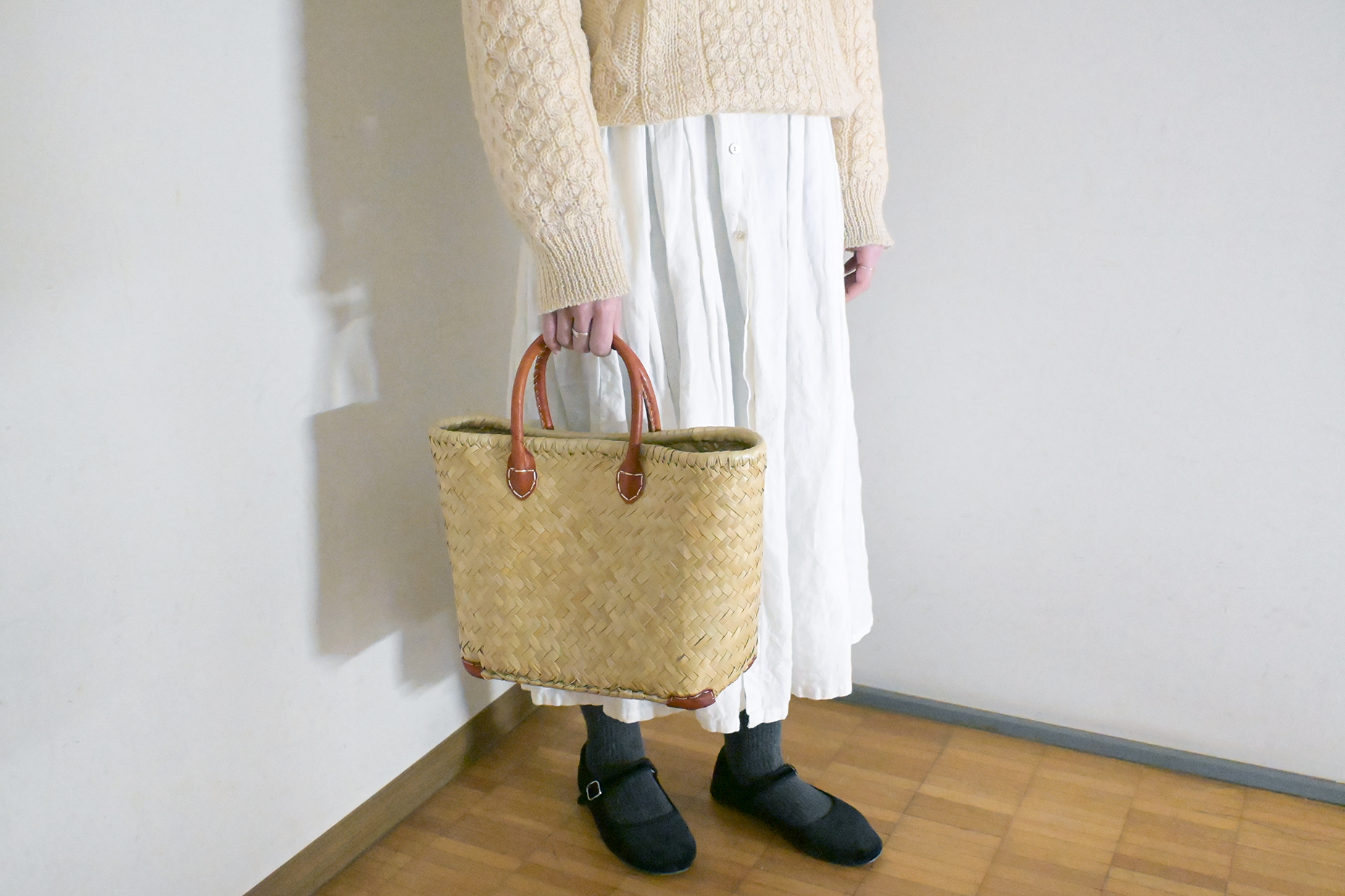 持手と底の補強用の革が、少しかちっとした印象のカゴバッグです。