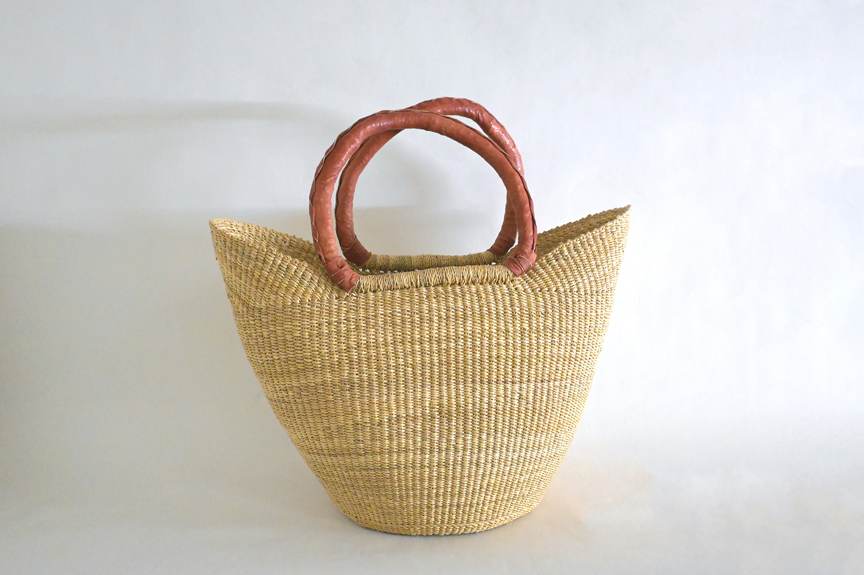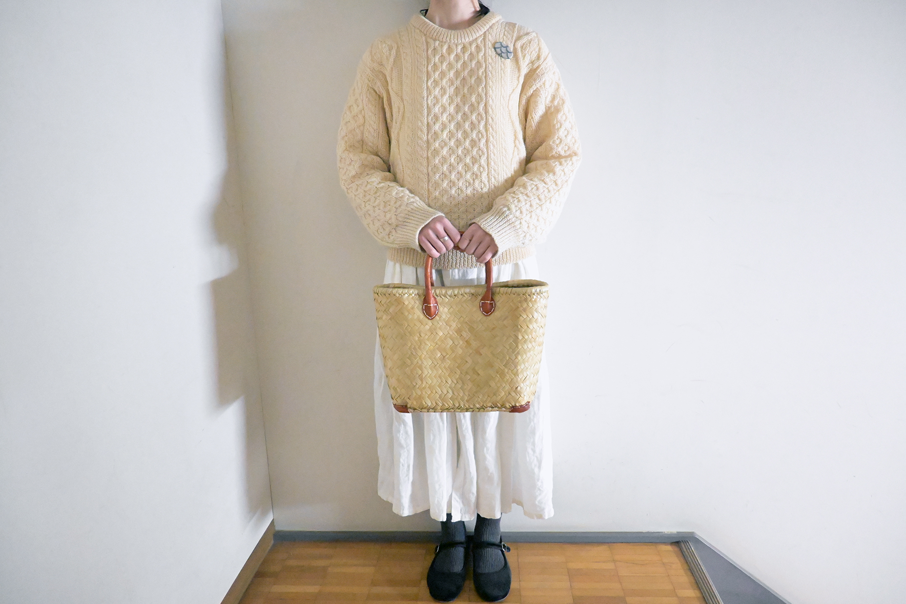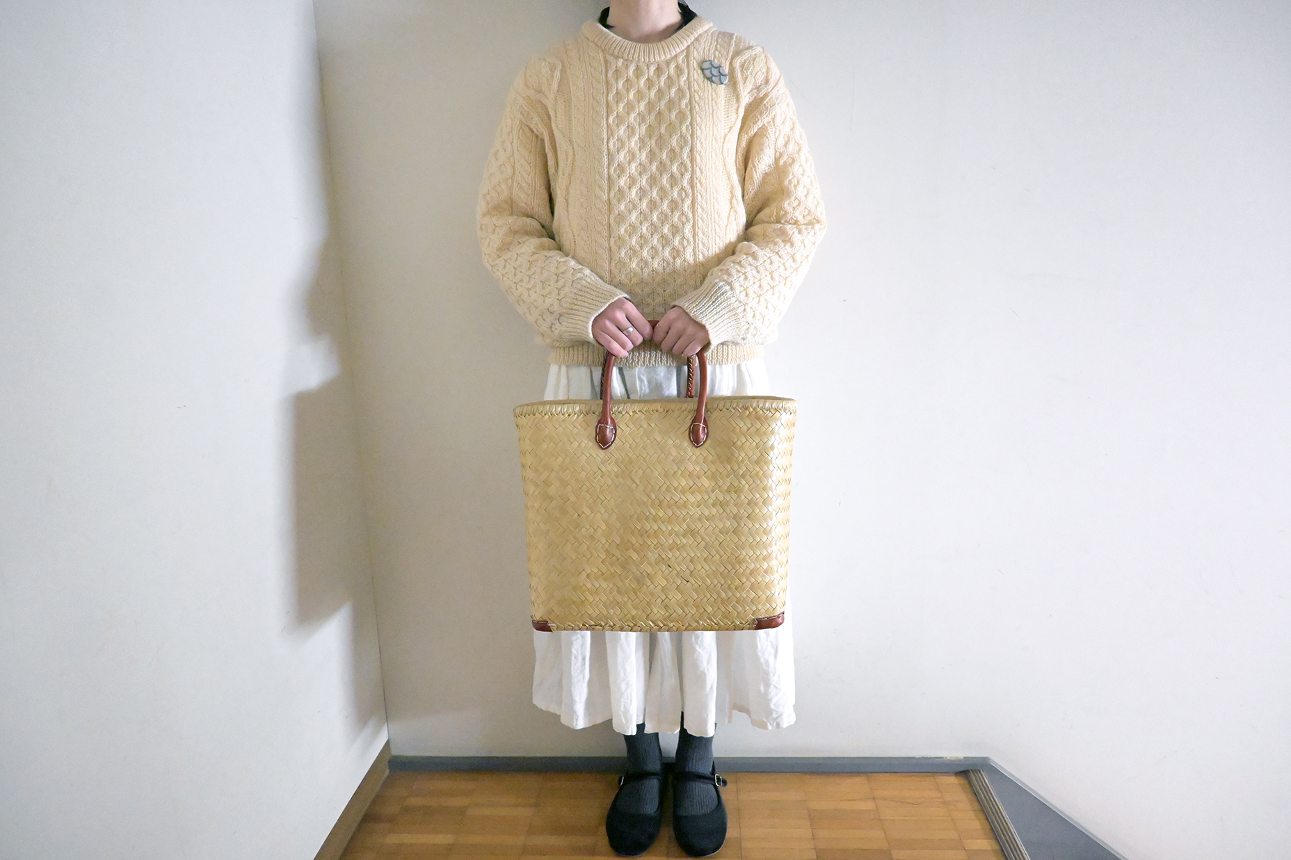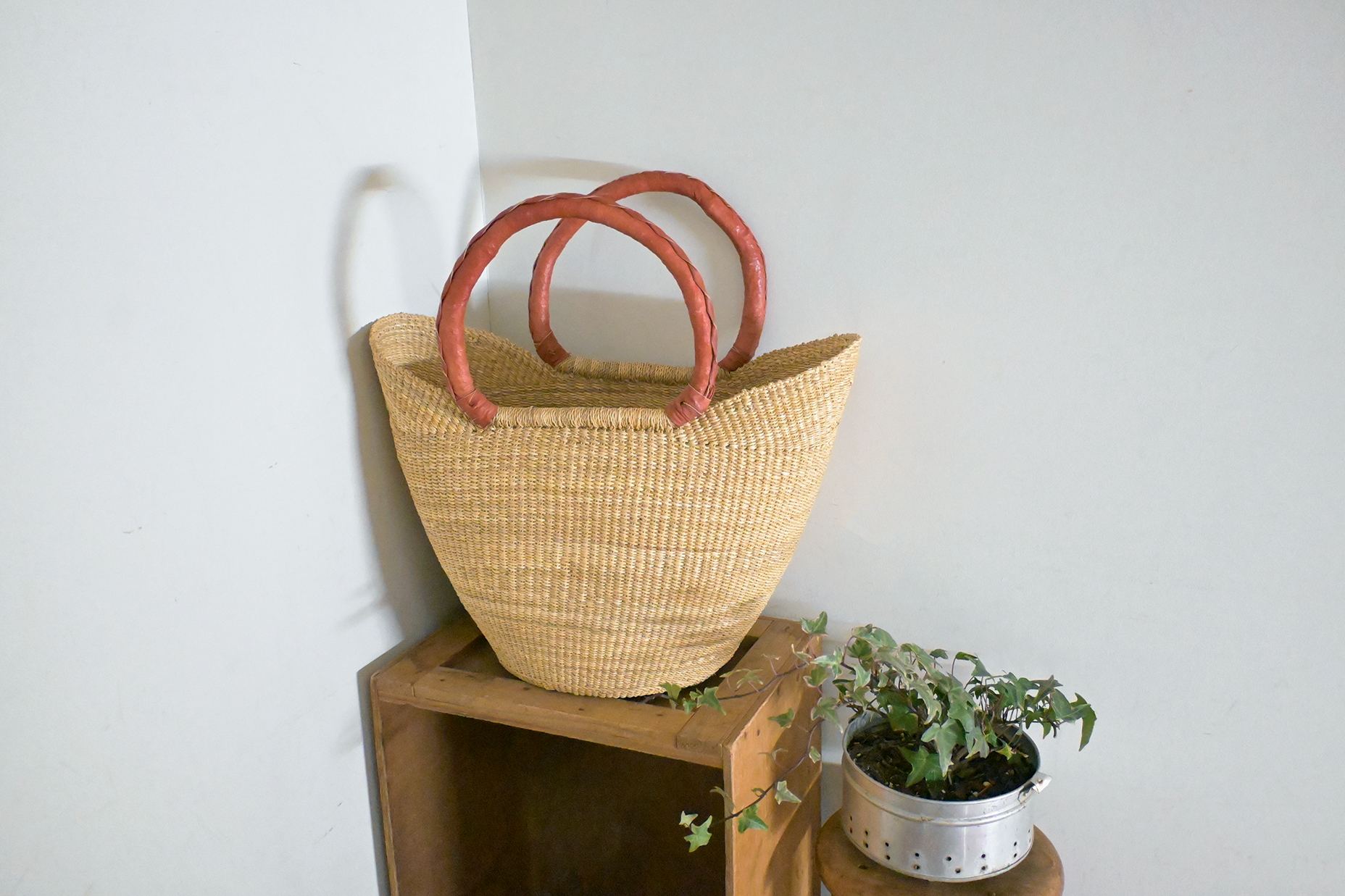 持手と底の補強用の革が、少しかちっとした印象のカゴバッグです。