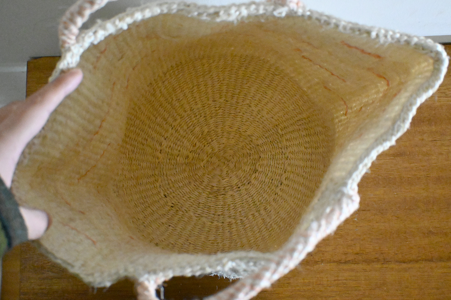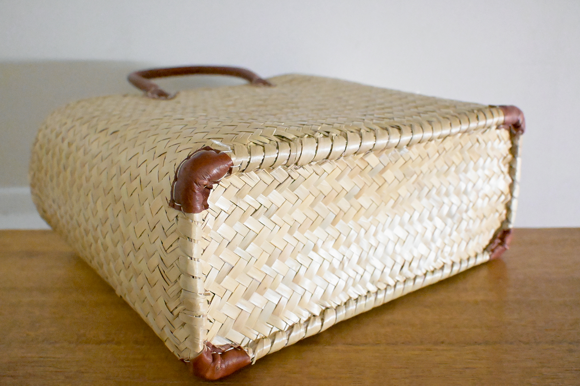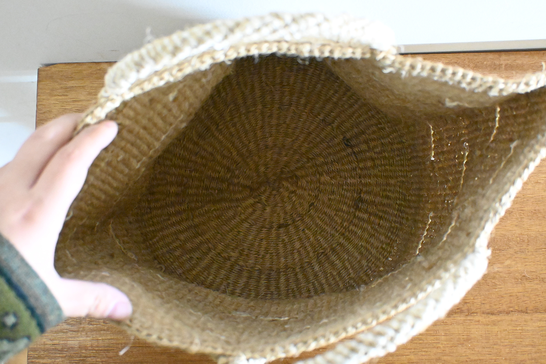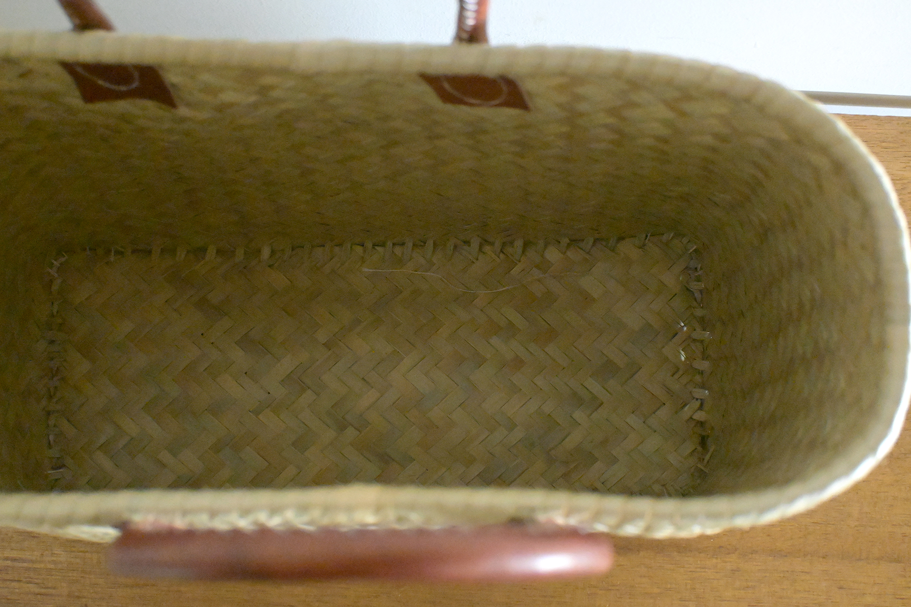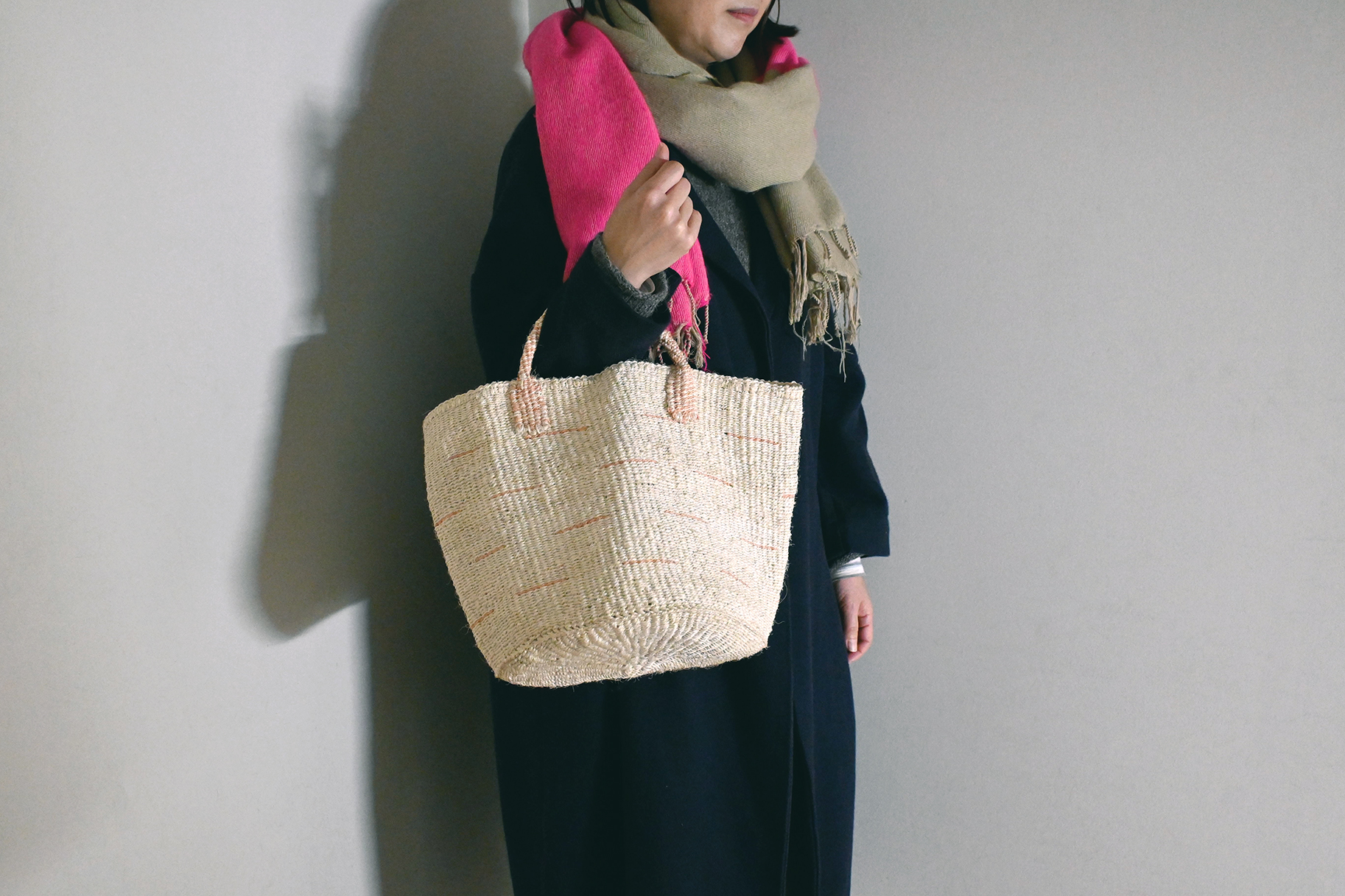 持手と底の補強用の革が、少しかちっとした印象のカゴバッグです。