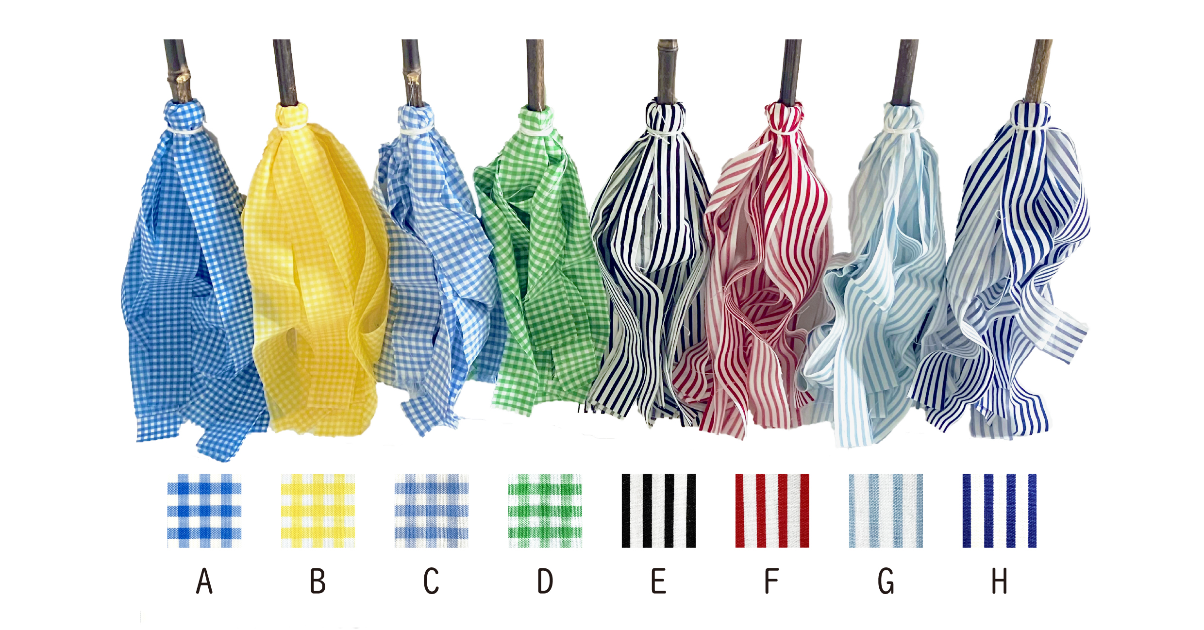 色は17色、柄はギンガムチェック・ストライプ・ドットの3パターンです。