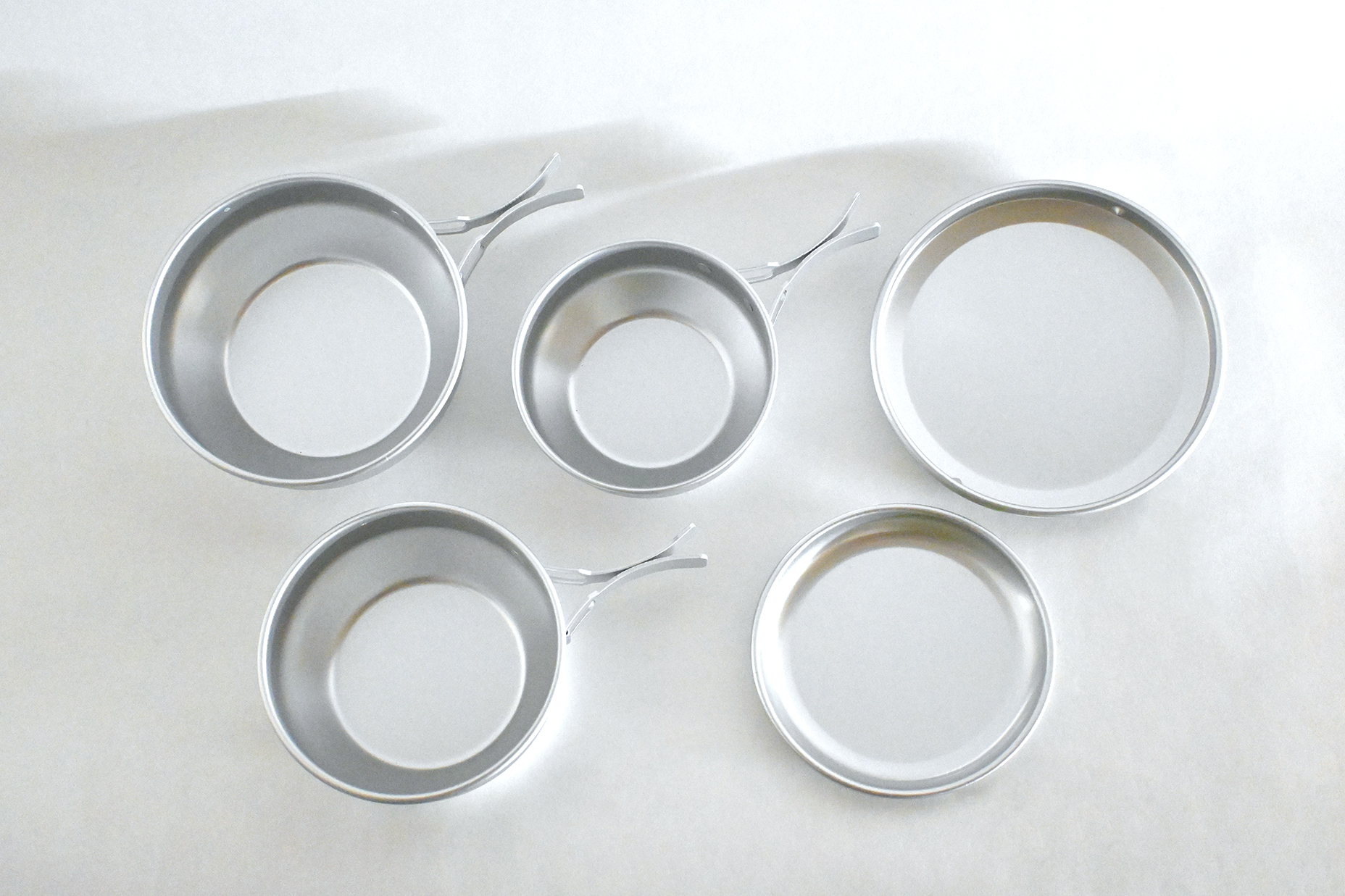 コッフェルが大・中・小、プレートが2枚の5点セットです。