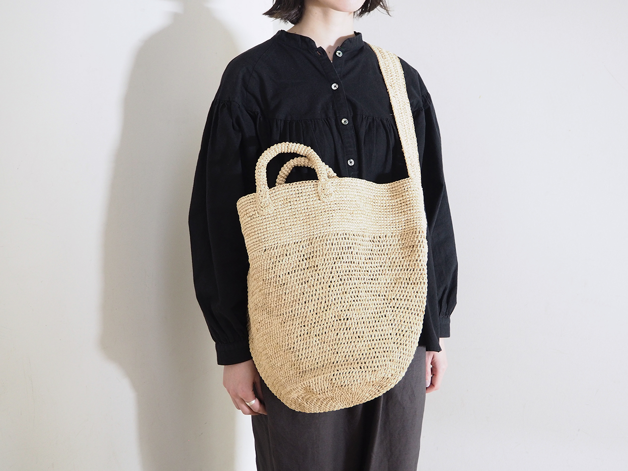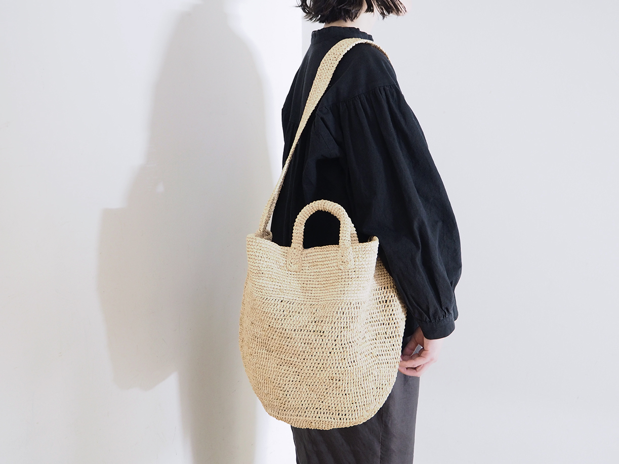 ラフィアかぎ編みバッグ丸底大ショルダー付が入荷いたしました。