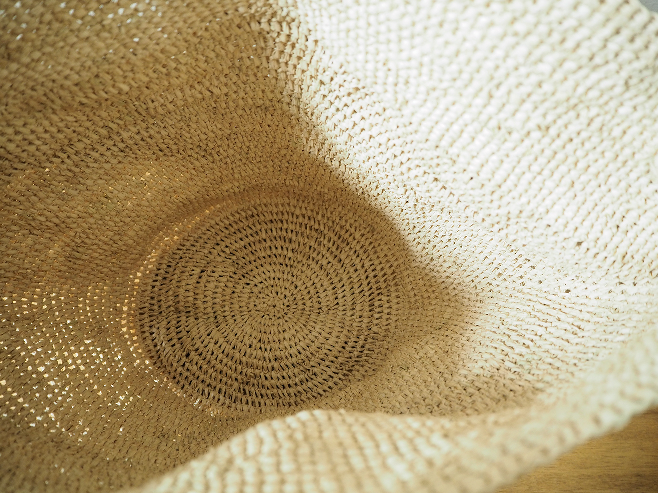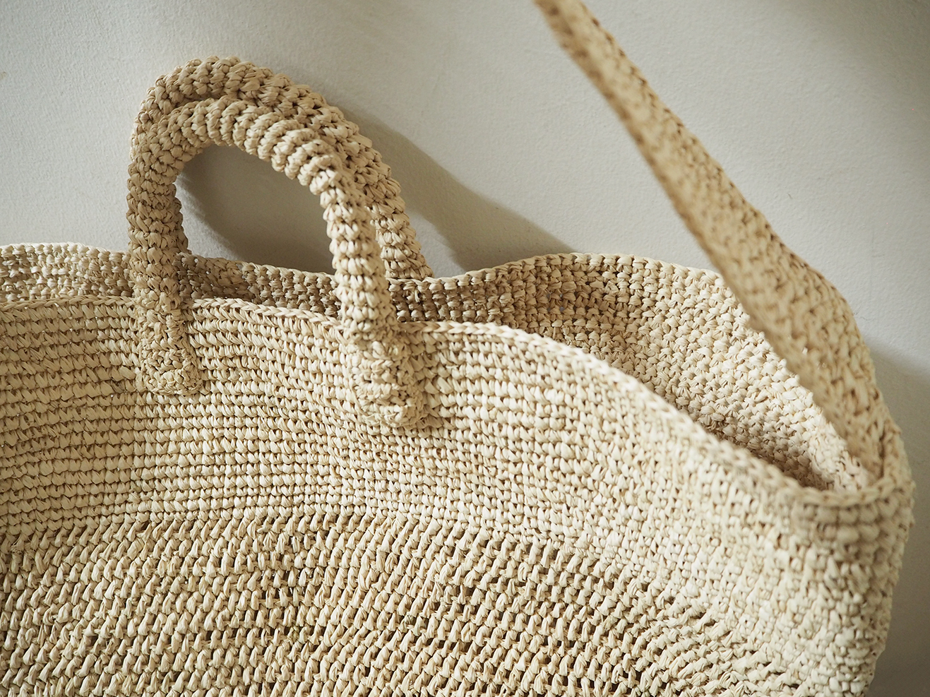 ラフィアかぎ編みバッグ丸底大ショルダー付