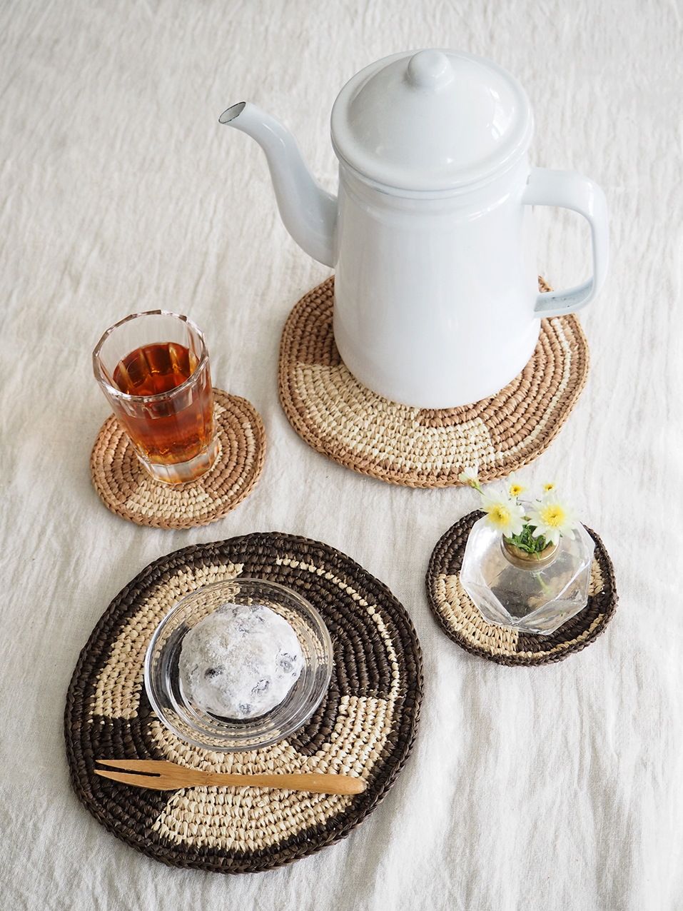 ラフィア素材のコースターと鍋敷きです。